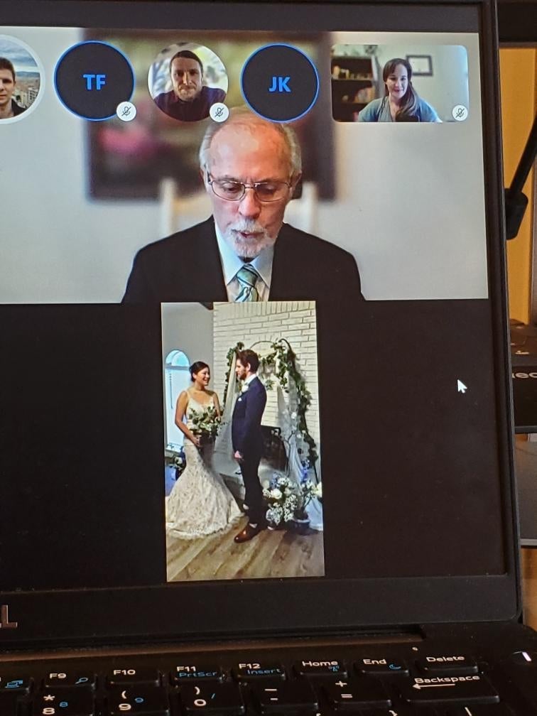 At this point, the couple decided that the ceremony would be held in the couple's backyard, with just Joyce's parents, the officiant and his wife, and Joyce's maid of honor in attendance but no photographer and videographer. They would stream the event live; Joyce's brother would play the violin for the processional from his apartment in New York.