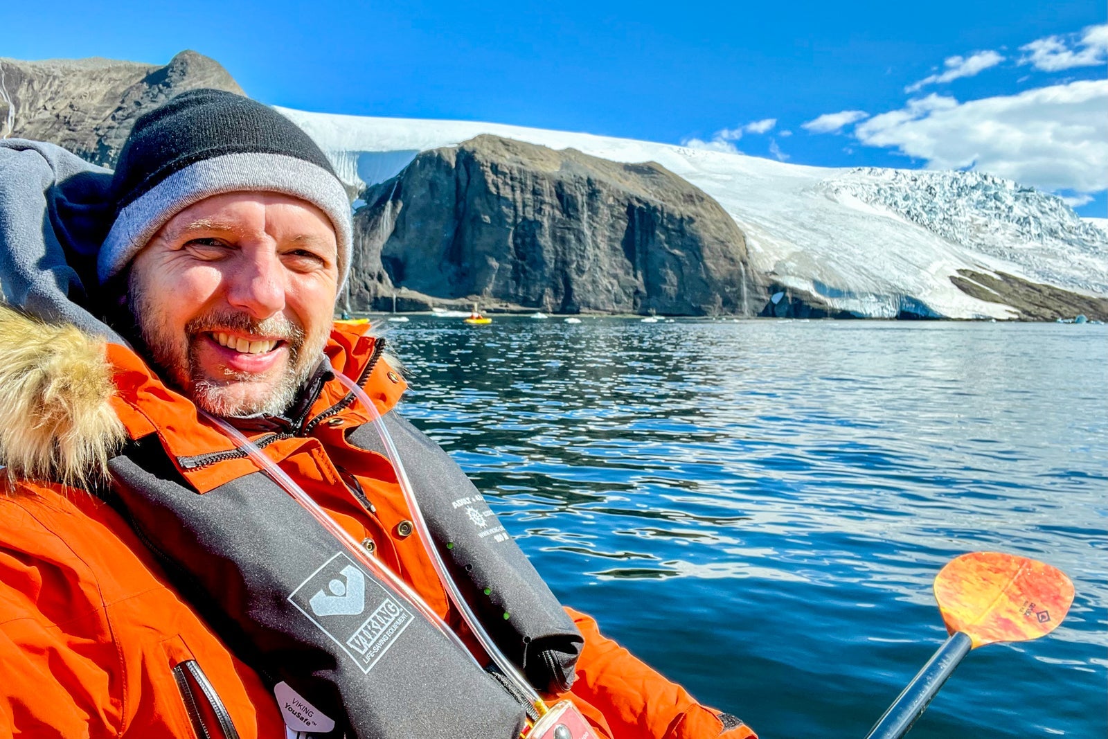TPG's Gene Sloan soaks in the splendor of Antarctica from a kayak. (Photo by Gene Sloan/The Points Guy)