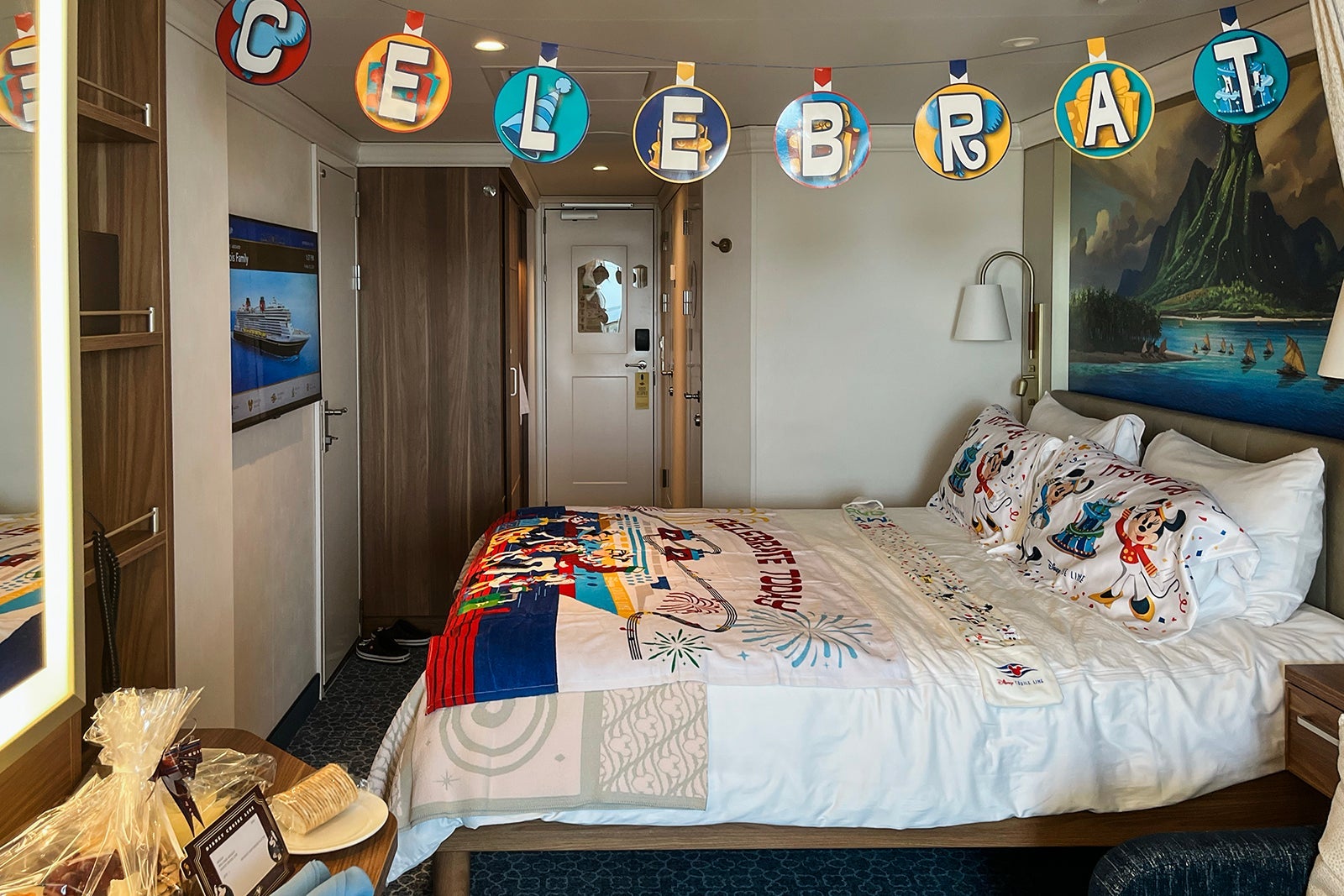 Some cruise lines sell door and cabin decorations online before a cruise begins and on board once you've embarked. These include Disney Cruise Line, Royal Caribbean and Carnival Cruise Line. If you plan on buying your decorations online or on the ship, be sure you have plenty of room in your suitcase to bring them back home with you, too. The decoration package might include souvenir pillowcases, towels and picture frames, as well as easier-to-pack magnets.