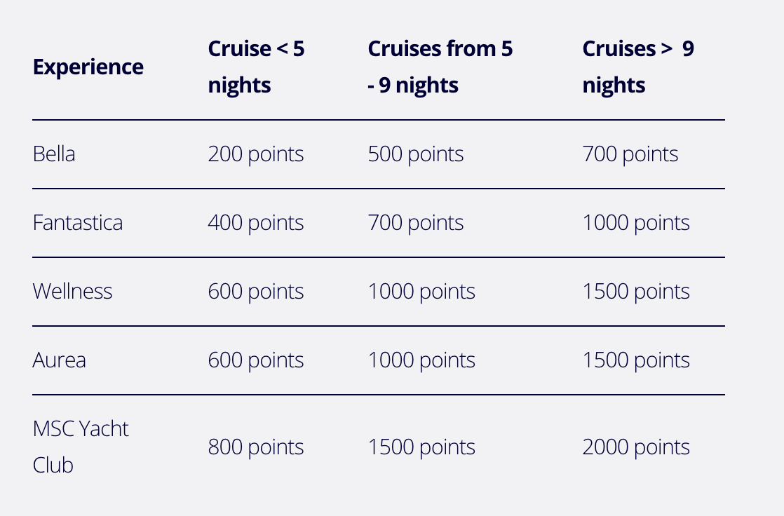 Here is a breakdown of the points you'll earn per day by cabin type: