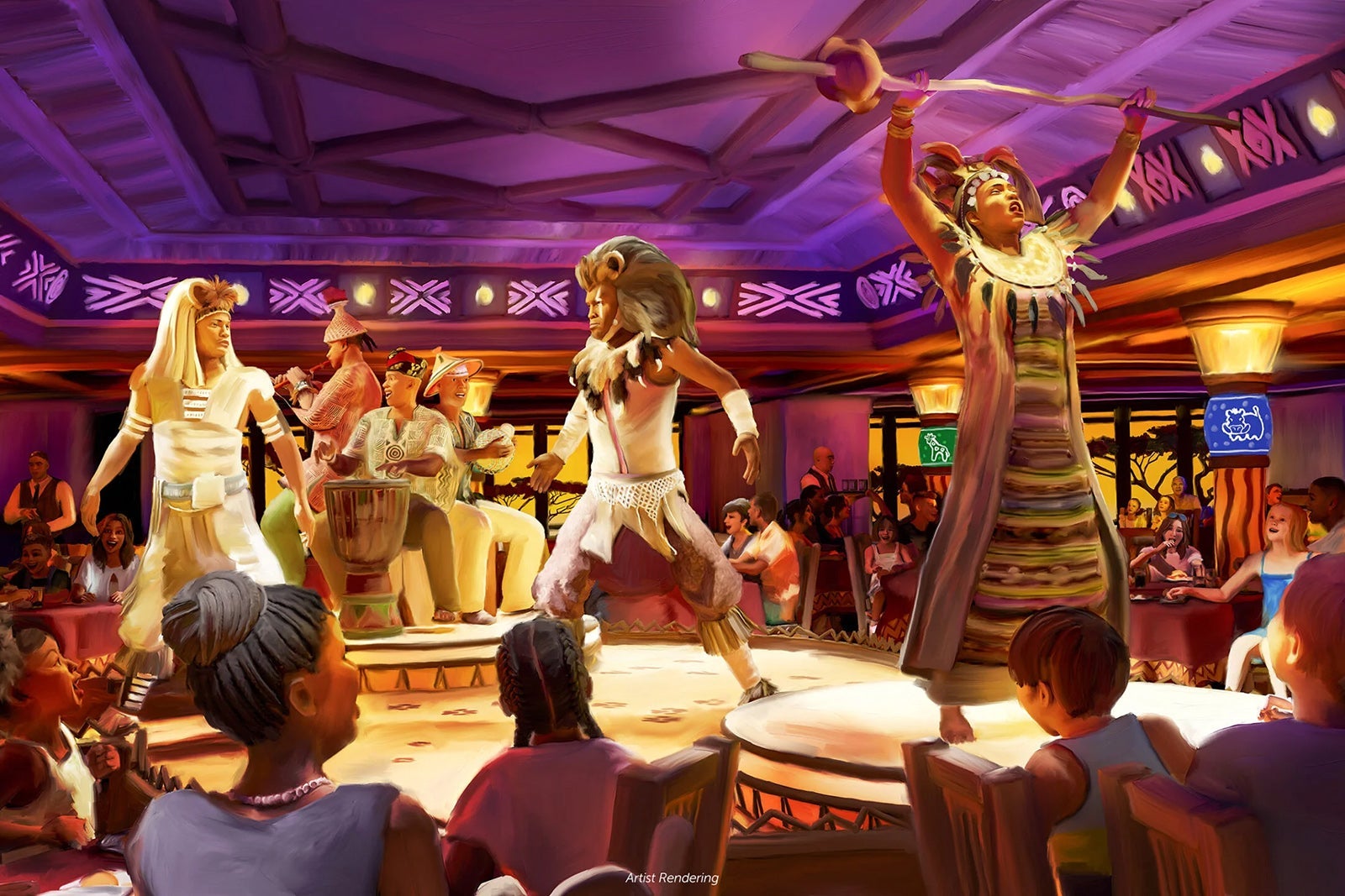 This all-new restaurant is a savanna-inspired venue themed to "The Lion King." It will replace the "Frozen"-themed show you will find on Disney Wish and the "Coco"-themed experience on Disney Treasure.