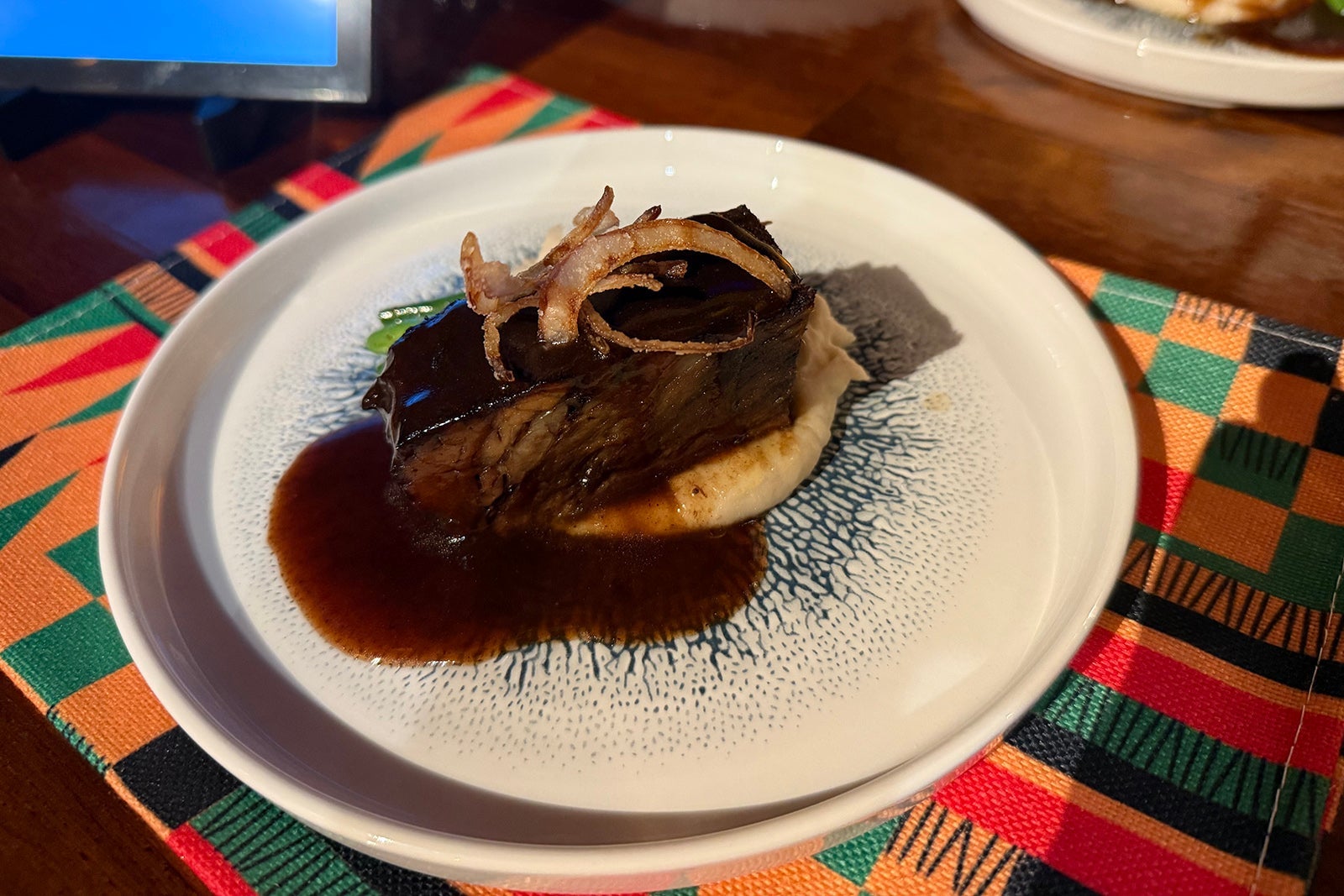 On the Pride Lands menu, you may find items such as port wine-braised center-cut beef short rib served with malanga mash, Swahili coconut red snapper served with coconut rice and warm chocolate malva pudding with vanilla ice cream — all three of which I thought were great in a preview tasting.