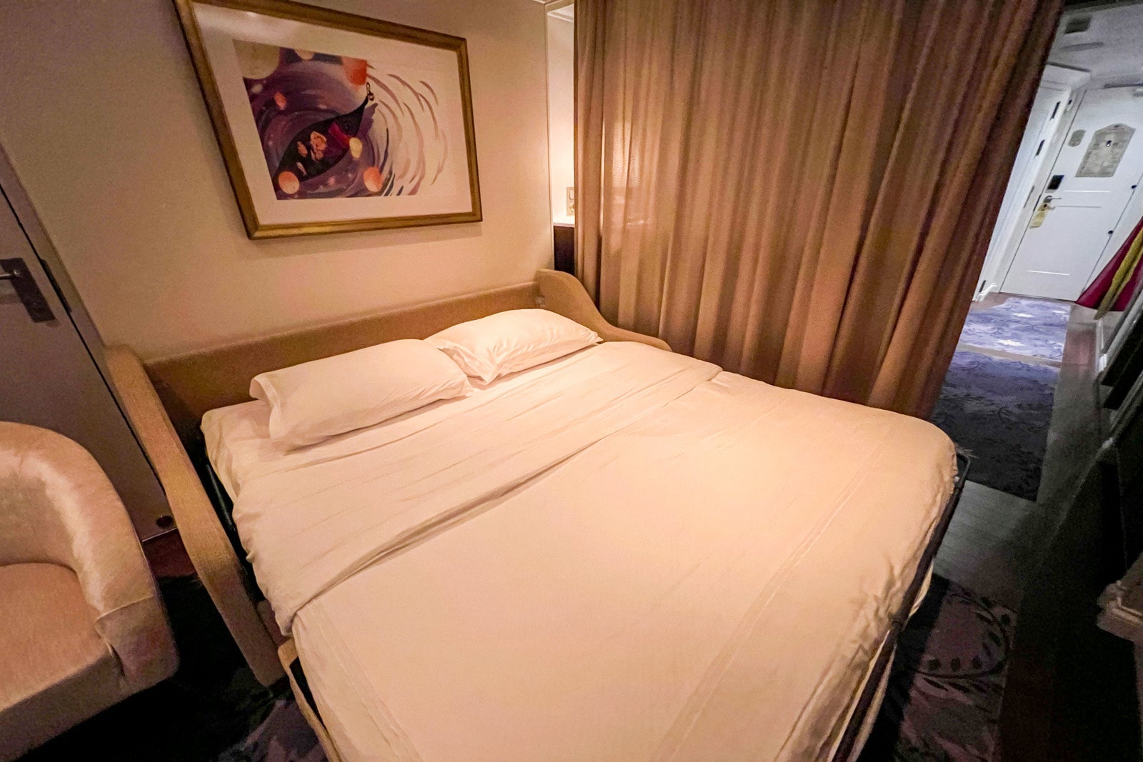 Disney Wish's layout was a bit different from what I'd found when staying in a one-bedroom suite on Disney Wonder, where suites have smaller single beds in the bedroom instead of the living room. That worked better for me at the time with younger kids, but I can see how Wish's arrangement may be ideal for those with older kids.
