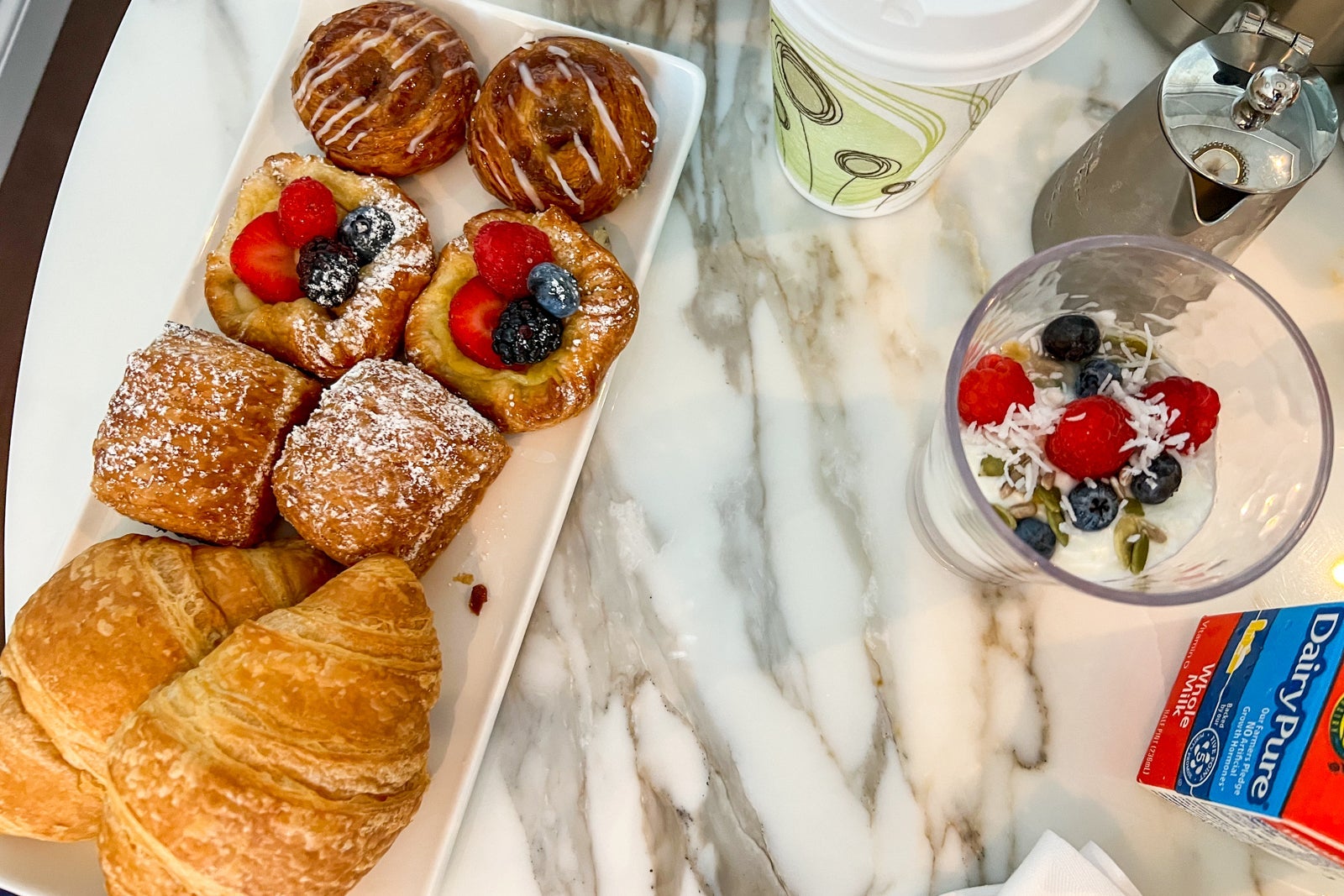 This is where you will find the kind, knowledgeable, personal and gracious team of four concierge hosts. It's also where you can enjoy small plates of snacks throughout the day; access a fridge full of complimentary juice, water and soda; and visit the included bar in the evenings from 5 to 10 p.m.