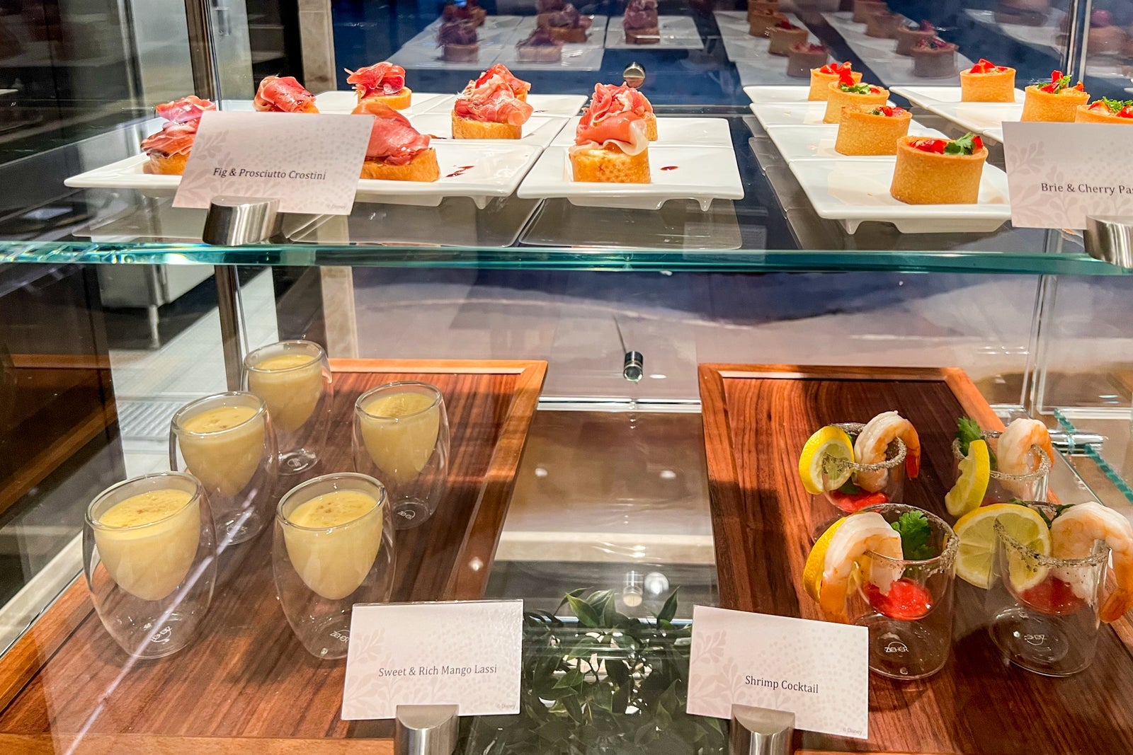 We were also told that our suite should be ready by the time we were done with our meal of smoked salmon, empanadas, and the epic welcome aboard sundae with vanilla bean ice cream, pecan-caramel cupcake bites and butterscotch topping — and that proved correct.