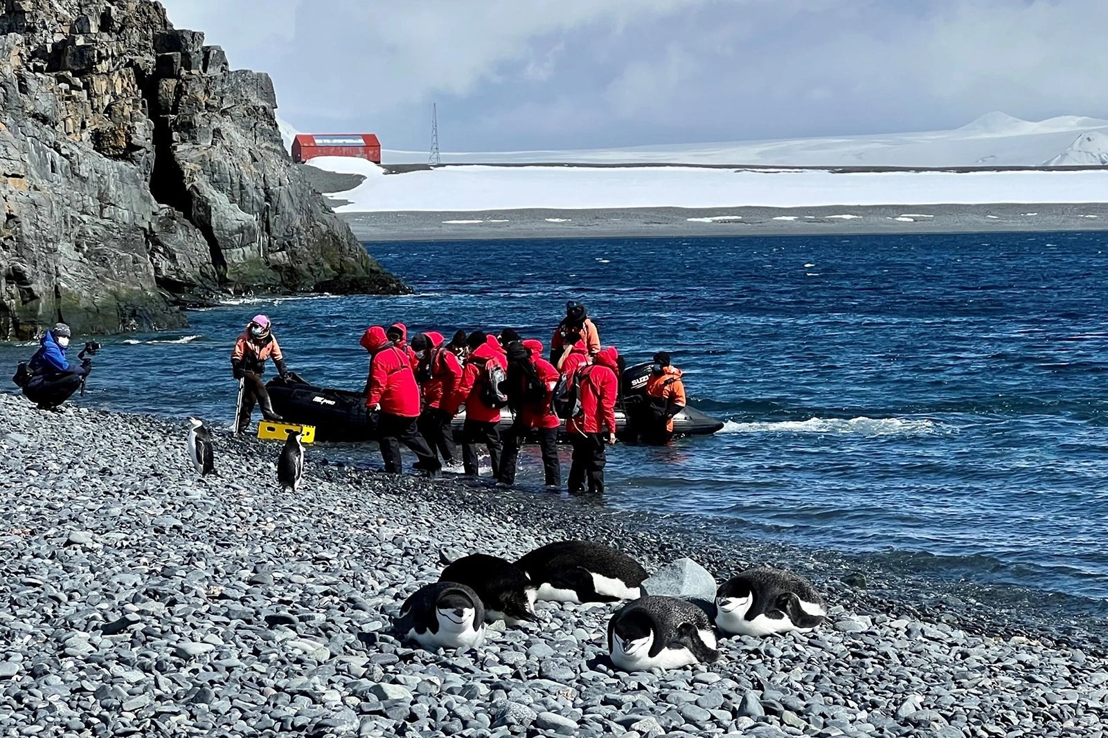 Passengers from the Silversea ship Silver Explorer during a "wet landing" by Zodiac boat at Half Moon Island in Antarctica. GENE SLOAN/THE POINTS GUY