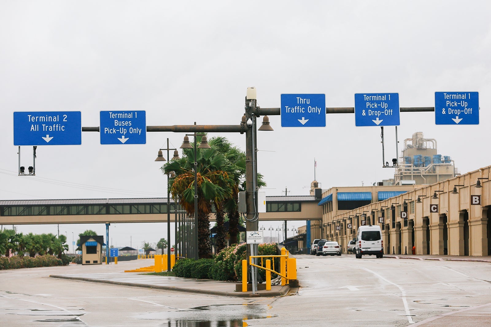 Taxis and ride-hailing services are available at both Houston airports. Taxis are metered, with fares averaging $165 from IAH. For ride-hailing services, follow signs and use your apps for directions to pickup points. We checked a prebooked Uber from IAH and were shown a starting fare of $98.