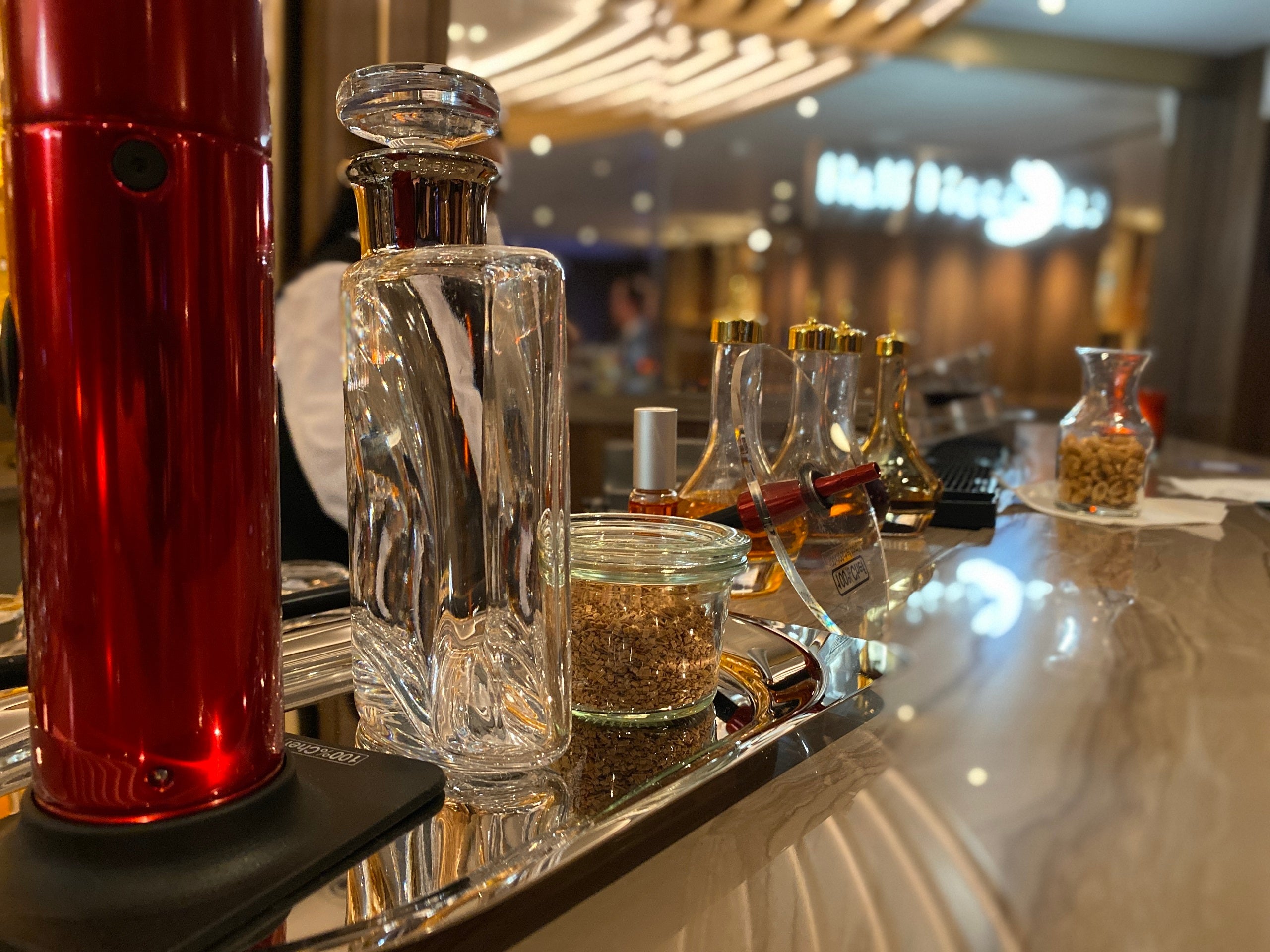 We highly recommend the Rotterdam VII, named for the ship and made with smoked gin and maraschino. Even if you aren't a fan of smokey drinks, the presentation alone is worth placing an order. (Trust me: Have your phone or camera ready.)