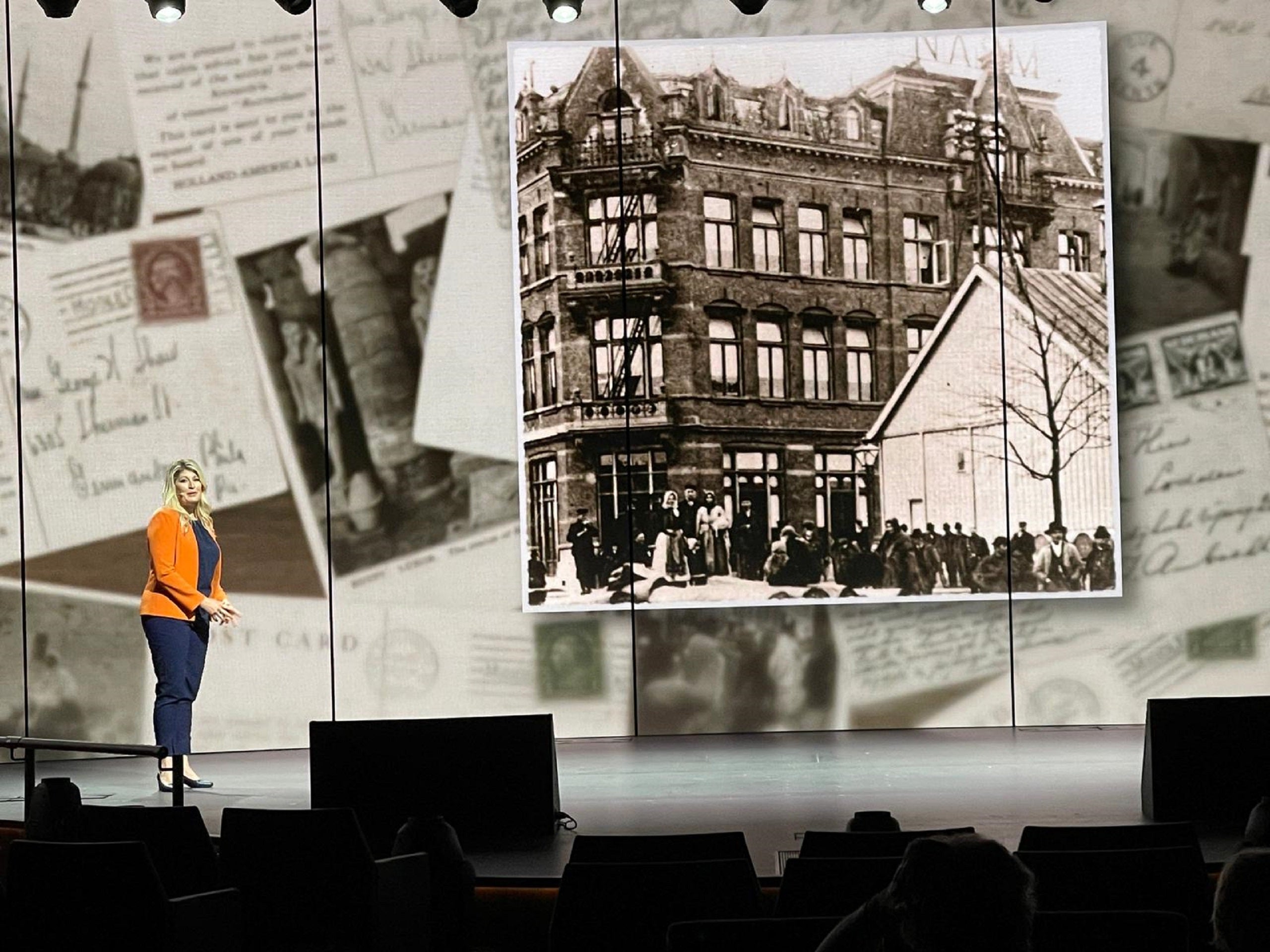 The cruise director on Rotterdam engages the audience during "Origin Story," a new show on Holland America Line ships (Photo by Ashley Kosciolek/The Points Guy)