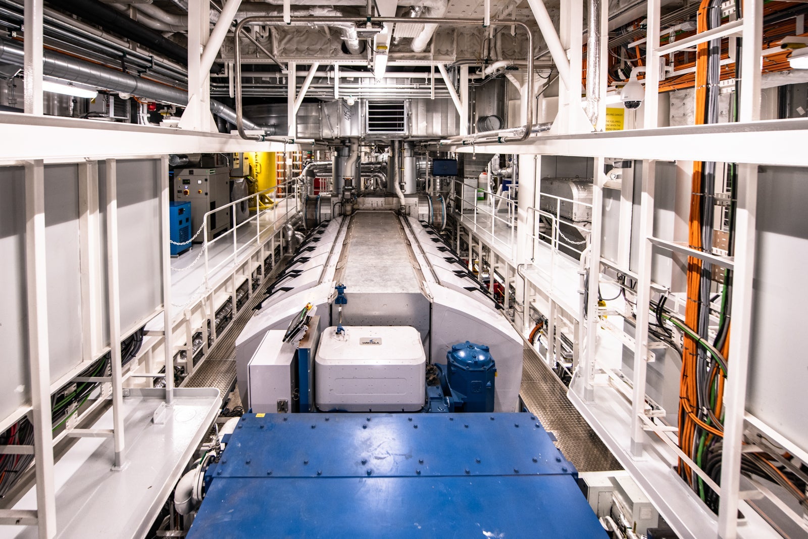 For safety, Le Commandant Charcot was also built with two engine rooms that are completely walled off from each other in a way that should allow the vessel to survive even a major catastrophe with one of them. In addition, in a very unusual twist, the self-contained motors in each of the ship's two Azipod propellers, which hang below the ship, have been split into two side-by-side half systems. Even if one of the half-motors blows, the Azipod should continue to run.