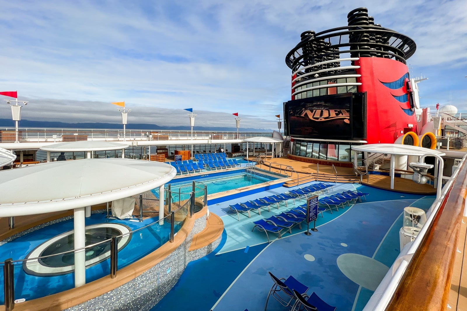 Disney Wonder has a few different pool areas. The main Goofy's Pool and two adjacent family-friendly whirlpools are on Deck 9 midship. Only guests ages 3 years old and up (and potty-trained) can use this pool.