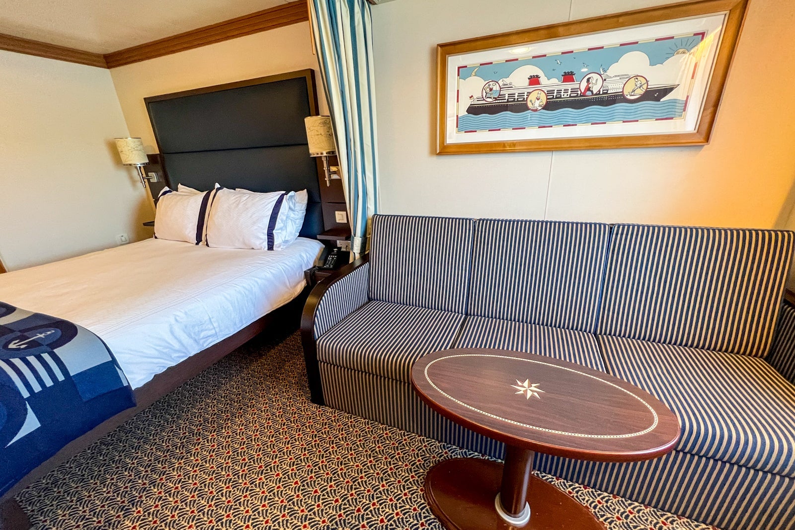 Most recently, we sailed to Alaska in a Deluxe Oceanview Stateroom that slept up to four guests with a queen bed, single convertible sofa and a pull-down upper berth. It's a comfortable room type for a family of three or a younger family of four.