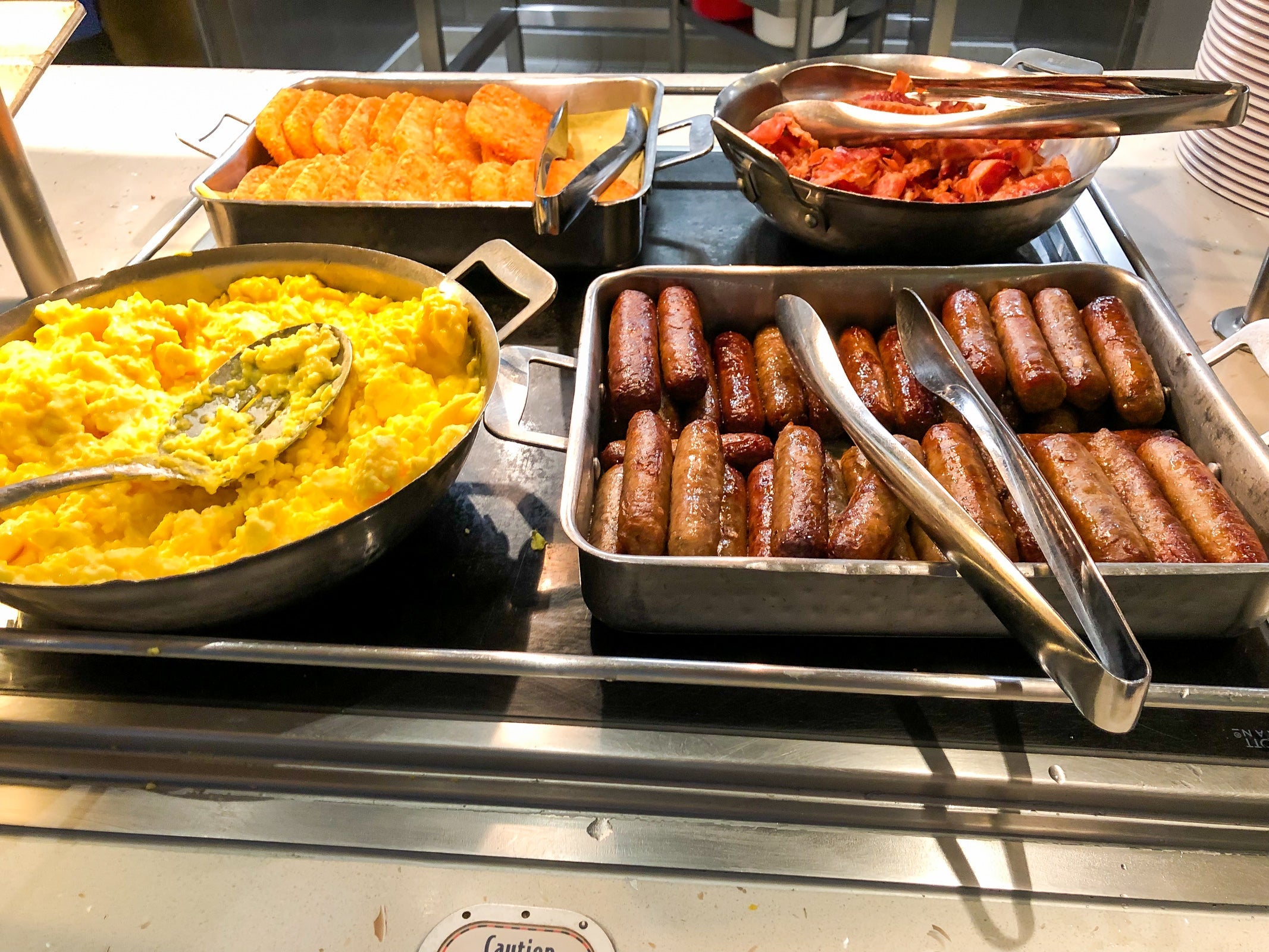 For breakfast, the buffet featured Mickey waffles, hash browns, bacon, sausage, eggs, donuts, fresh fruit, muffins and pastries. Combined with the unlimited self-service coffee and orange juice, this place was a hit.