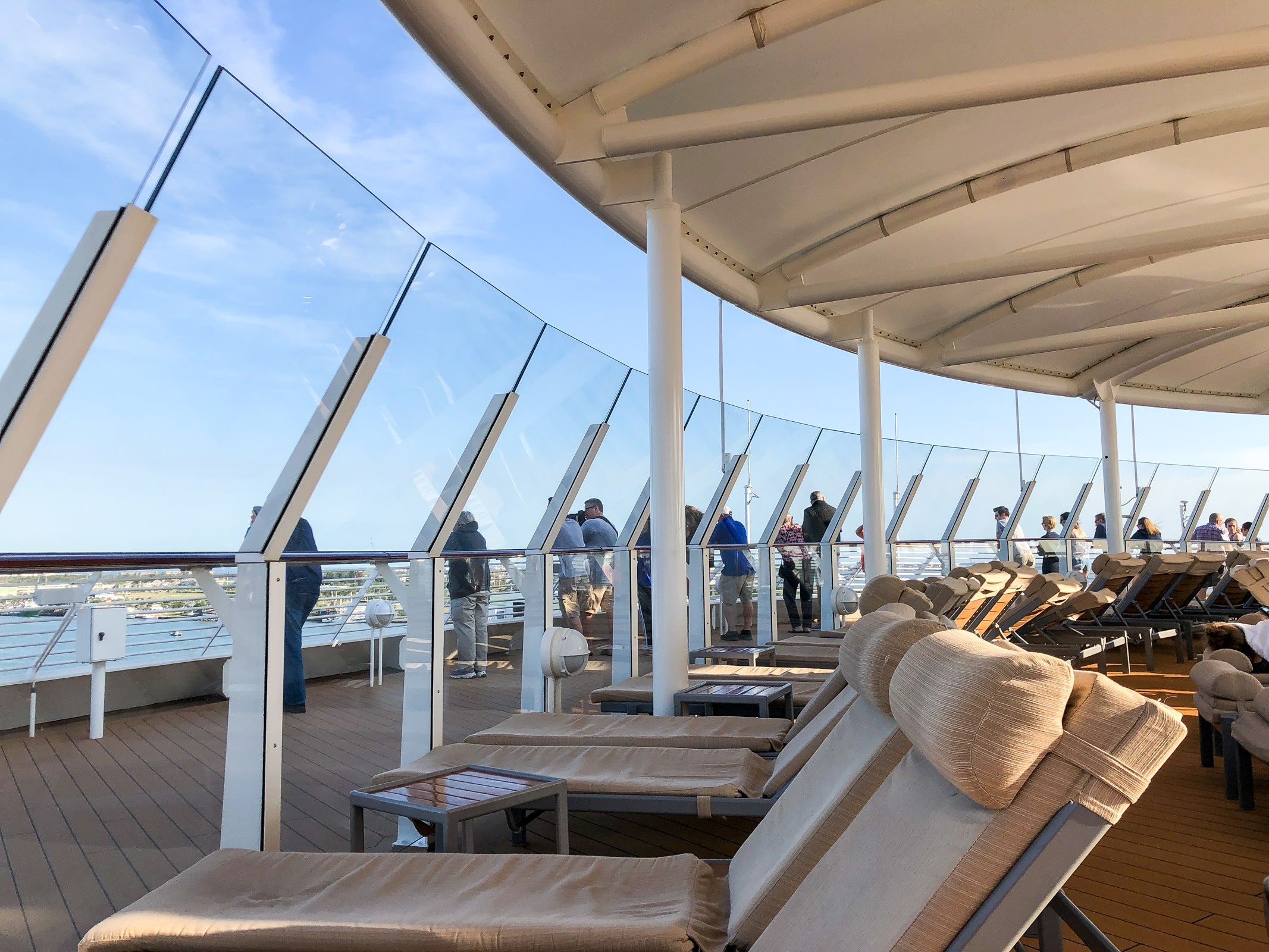 The best views for the sail-away party were from the very front of the ship, and we enjoyed them with premade frozen cocktails that were sold around the deck.