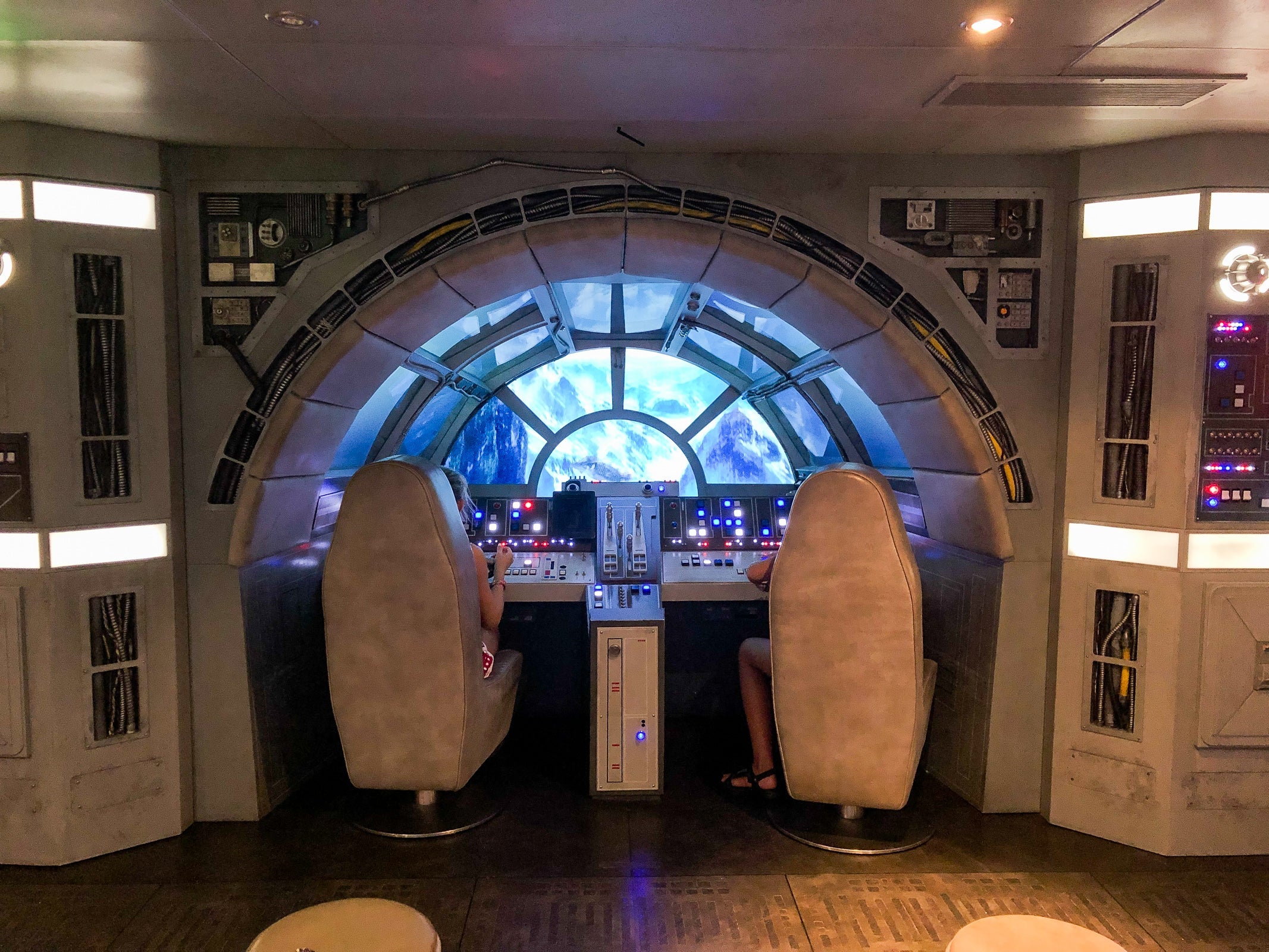 You also needed a special $12.95 band to use the kids clubs that tracked exactly where the kids were in the club and registered their comings and goings, but that was refundable if you turned the band back in on the last night. If I were a kid, you'd find me parked flying the Millennium Falcon for as long as possible.