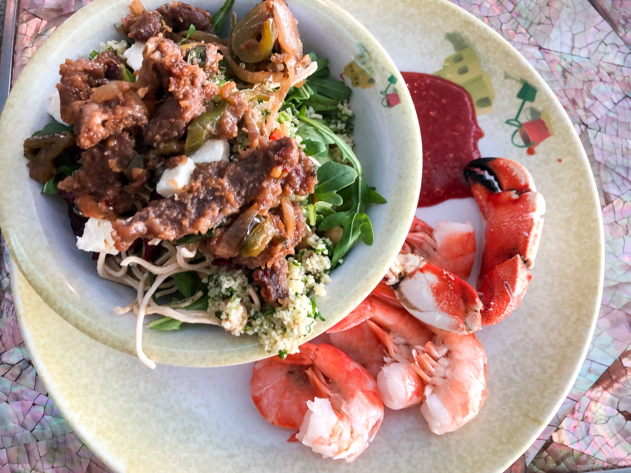 The buffet on the main deck, called Cabanas, was also enjoyable — better than you'd probably expect from a cruise buffet. We ate here for one lunch and for breakfast the final morning, since our assigned restaurant time was at a not-gonna-happen 6:45 a.m. On the lunch buffet, we found standouts such as peel-and-eat shrimp, sushi and build-your-own salad.