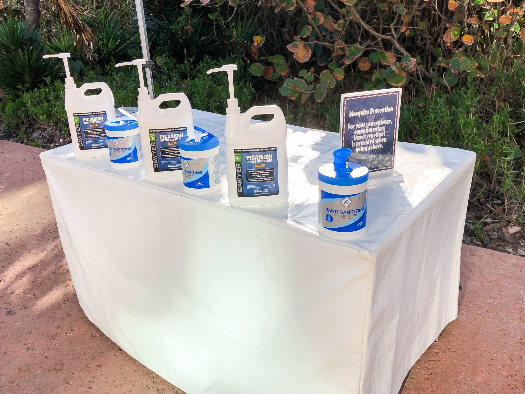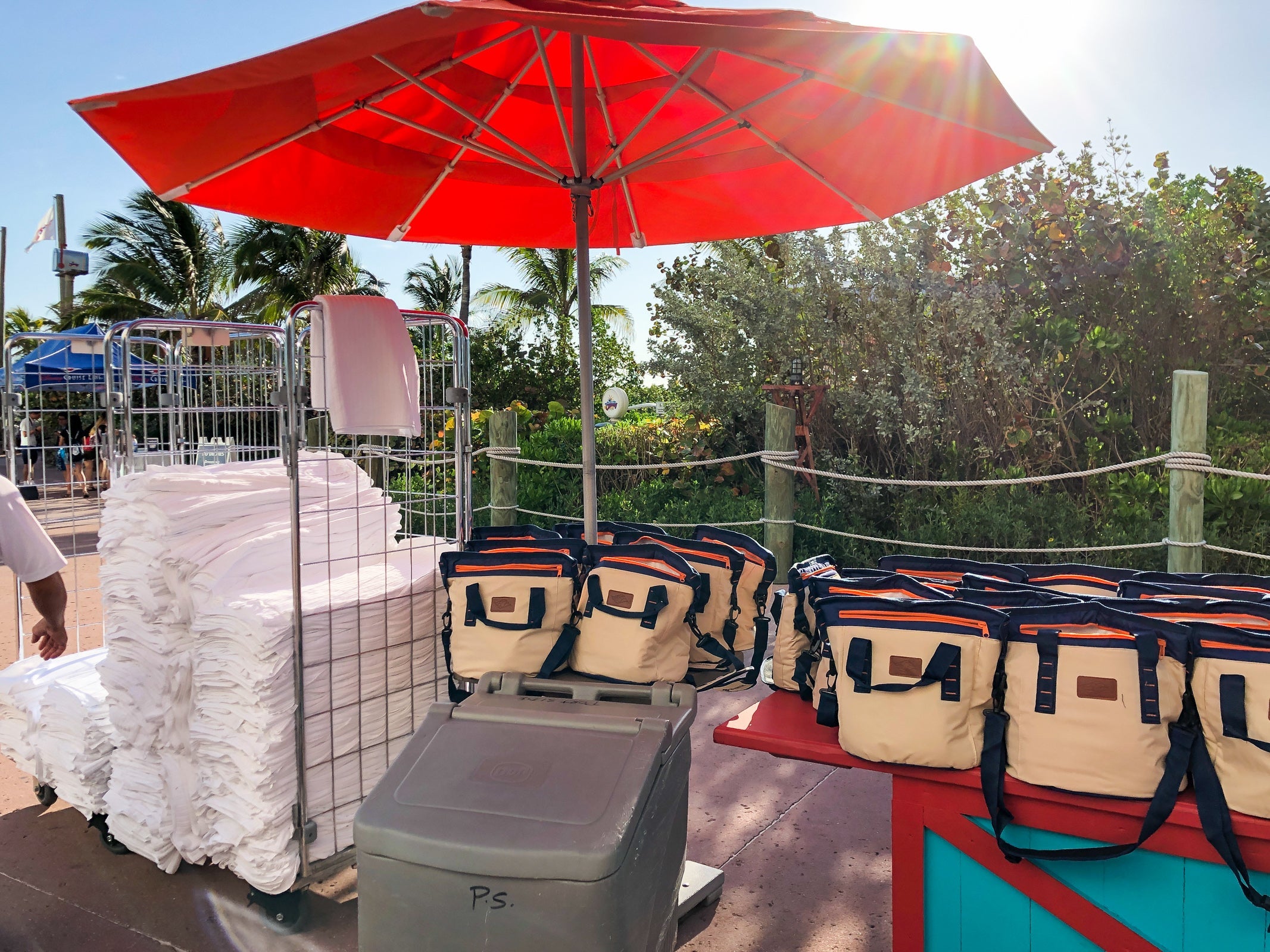 As soon as we disembarked at Castaway Cay, we could buy a cooler of water and ice. We now wish we hadn't skipped the free bug spray station — we received very itchy bites while on the island.