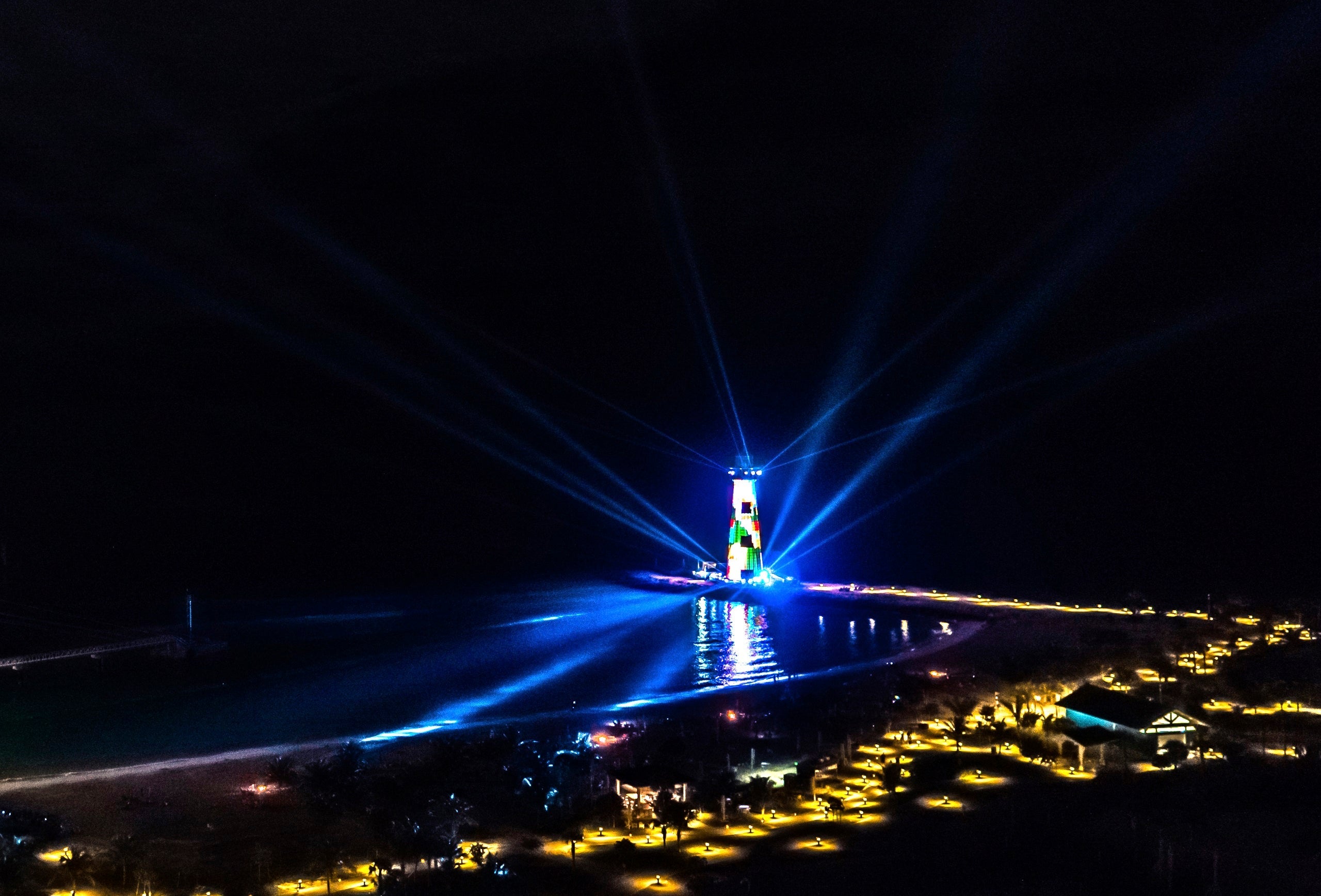 Part of the lighthouse light show on MSC Cruises' private island, Ocean Cay, in the Bahamas. (Photo courtesy of MSC Cruises)