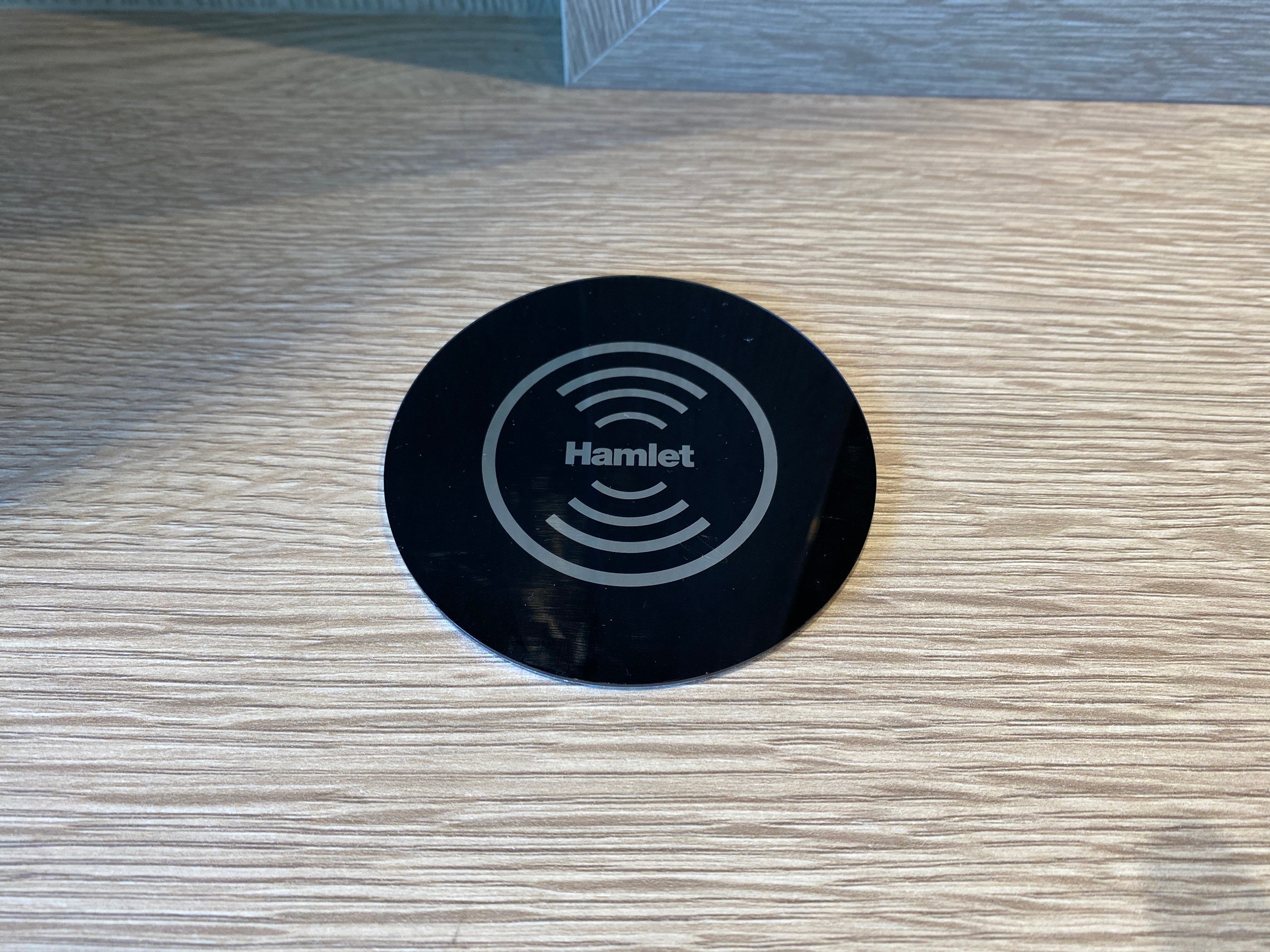 Hamlet, a feature built into the desk in each cabin on MSC Seashore, allows for wireless device charging, even when you're not in your room. (Photo by Ashley Kosciolek/The Points Guy)