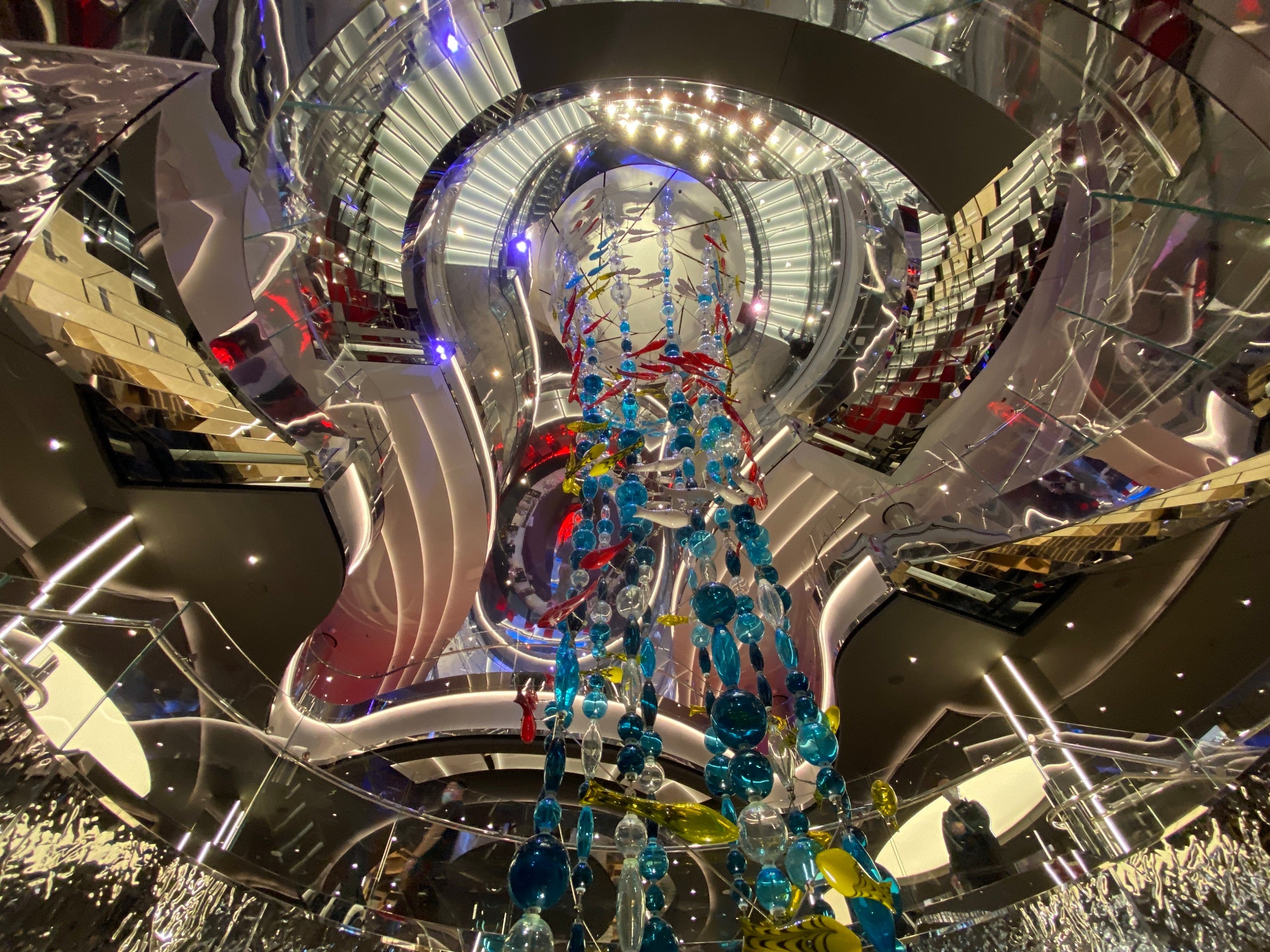 MSC Seashore's Danza del Mare, a four-deck sculpture crafted by Italian glassmaker Venini. (Photo by Ashley Kosciolek/The Points Guy)