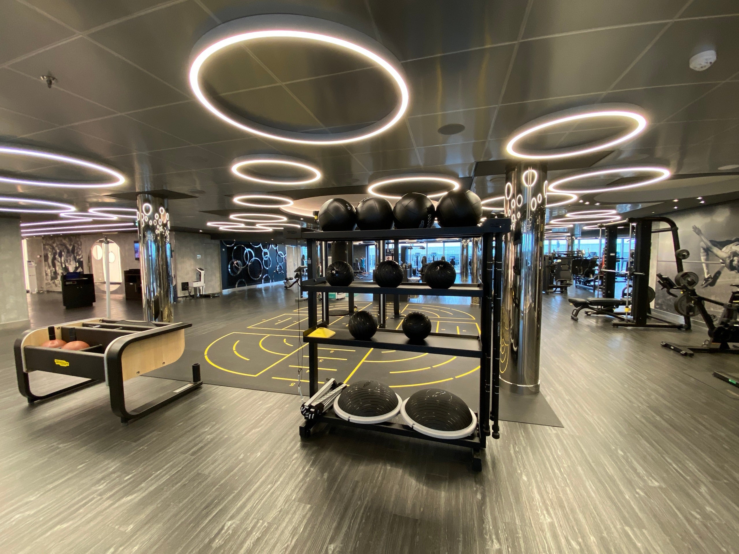 The fitness center, which is one of the largest I've ever seen on a ship, is outfitted with Technogym equipment that includes weight machines, medicine balls, circuit training equipment and cardio machines.