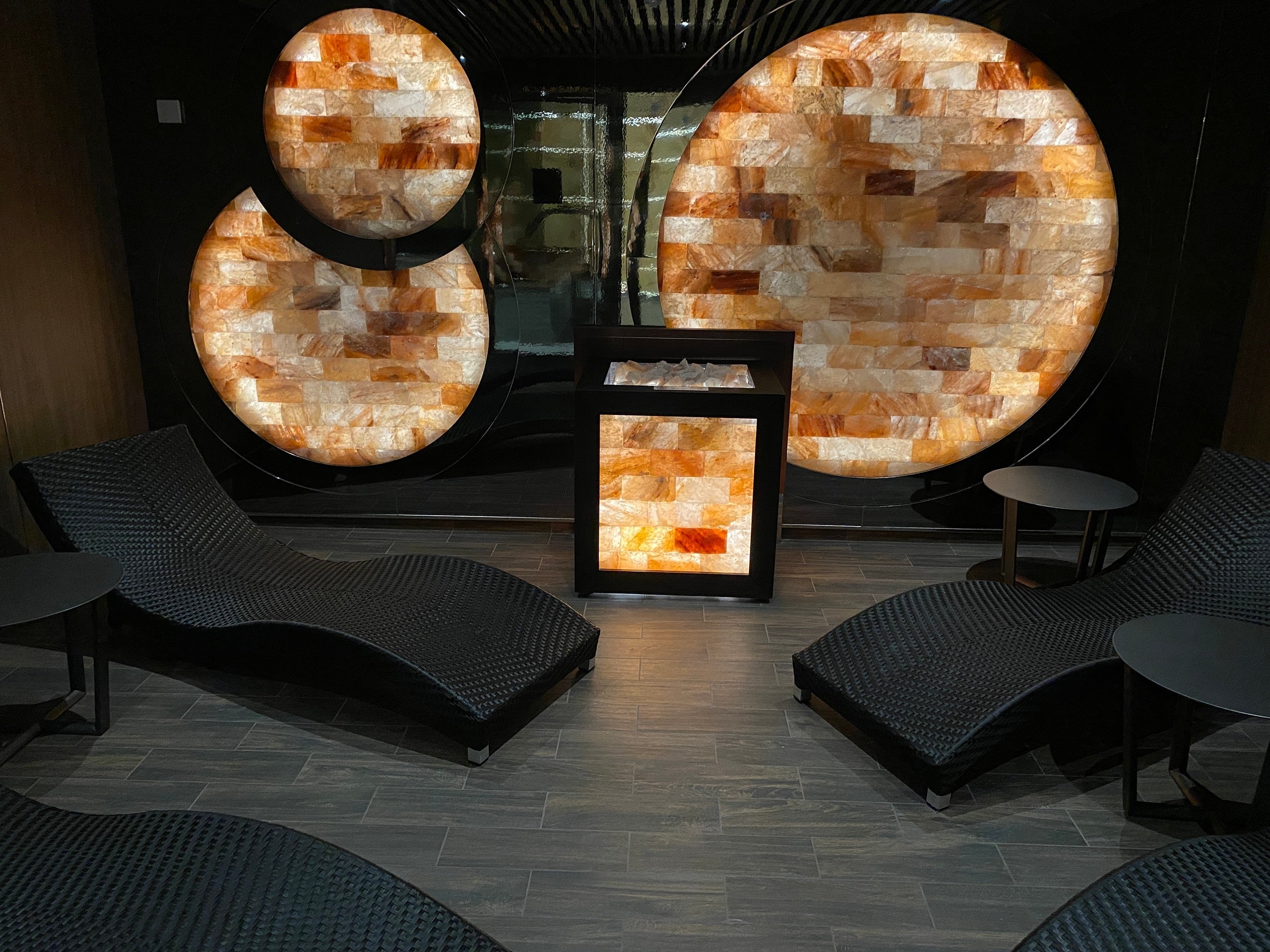The Aurea Spa on MSC Seashore is huge and features a thermal suite with several rooms, including this salt room. (Photo by Ashley Kosciolek/The Points Guy)