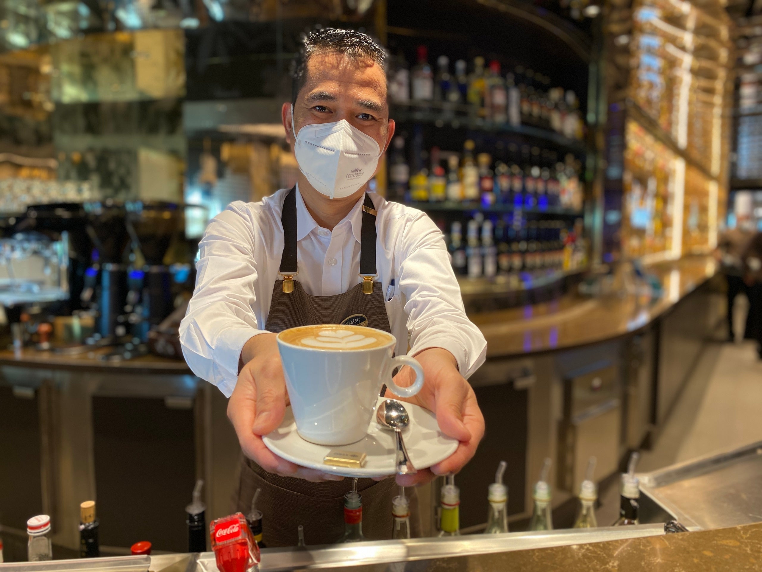 Crew member Richard makes the best cappuccinos at Venchi on MSC Seashore. (Photo by Ashley Kosciolek/The Points Guy)