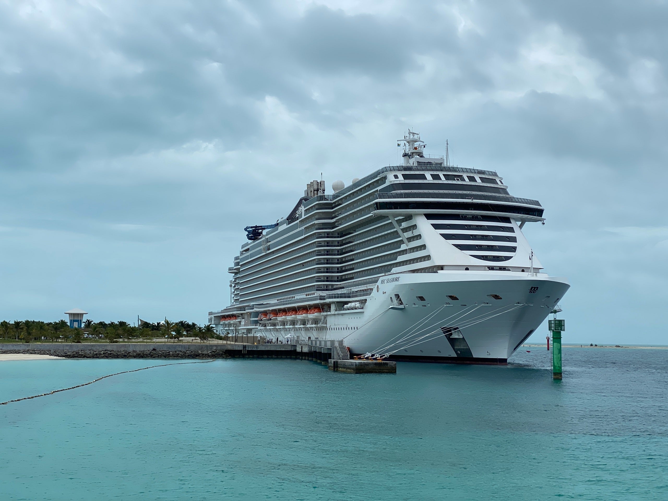 MSC Seashore docked at private island Ocean Cay in the Bahamas. (Photo by Ashley Kosciolek/The Points Guy)