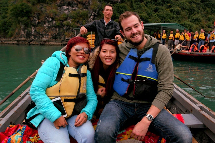 I had so much fun sailing around Ha Long Bay and getting a chance to see some of the islands — most had cool names, too, like The Finger, Incense Burning Island and Fighting Cock Island just to name a few. We also had a unique opportunity during an afternoon excursion to visit the Cua Van Floating Fishing Village, a local Vietnamese community that lives in houseboats and runs a fish farm in Ha Long Bay. I spoke to some people there who told us about the area and recommended we also check out Surprise Cave, Tree Cave and Jungle Cave, three hidden caves on three of the islands, all popular stops on the Ha Long Bay tourist trail.