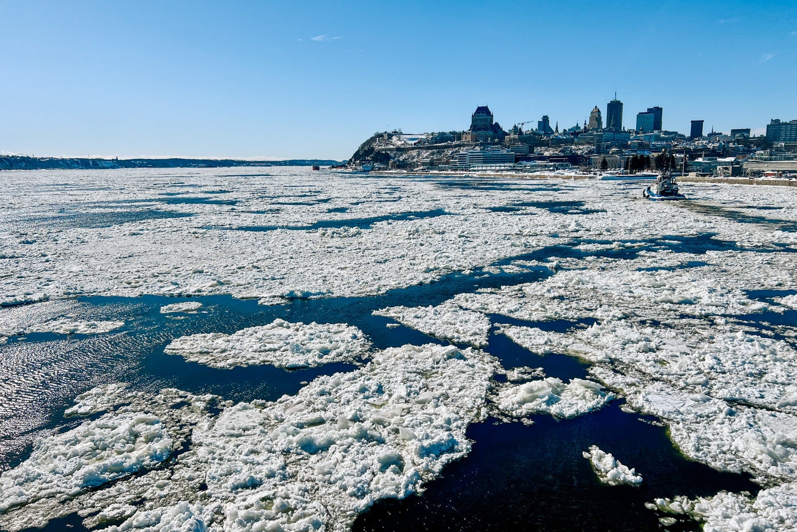 As I watch, mesmerized, as Le Commandant Charcot's massive bow smashes ice into smithereens before my eyes, I am just 130 miles northeast of Quebec City in the Canadian province of Quebec.