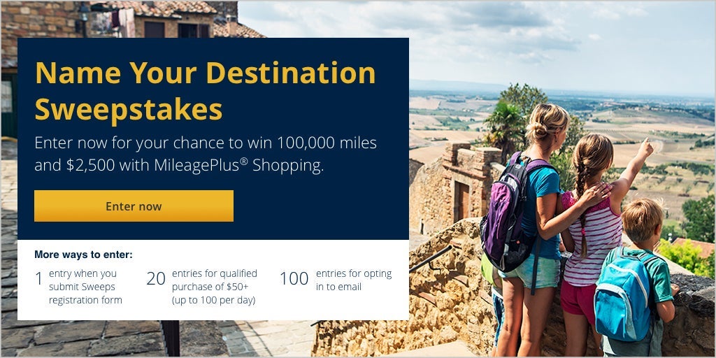 - 100 entries: Install the MileagePlus Shopping browser extension.
