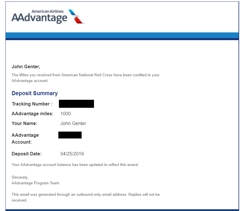 The terms and conditions are short, but include a couple of important pieces of info: you need to provide your AAdvantage number at the time of donation, and miles won't show up on your statement for 30 to 45 days after the donation is received. So don't count on the miles posting immediately.