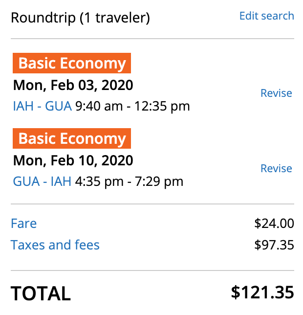 Houston (IAH) to Guatemala City (GUA) for $121 round trip on United basic economy: