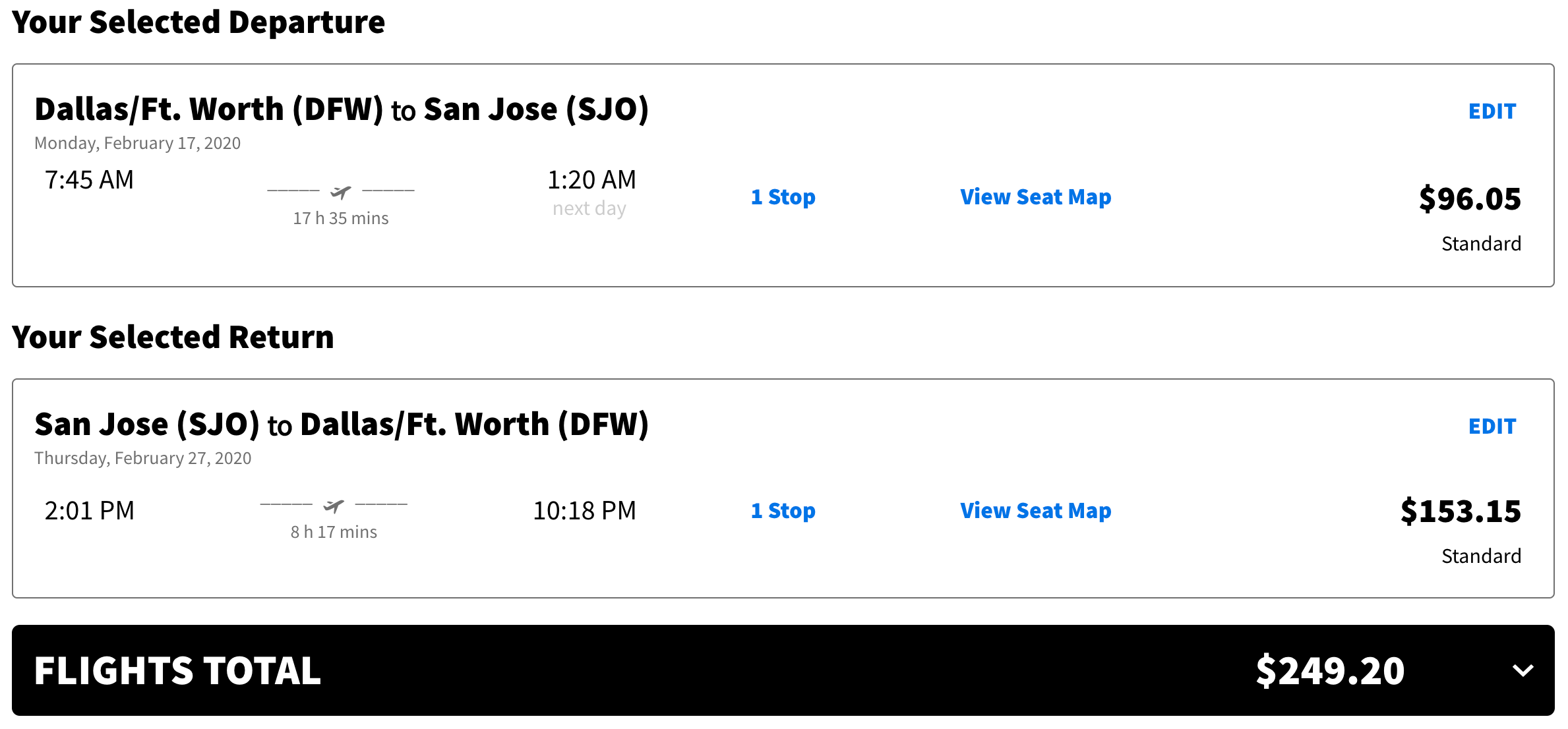 Dallas (IAH) to San Jose, Costa Rica (SJO) for $249 round trip on Spirit: