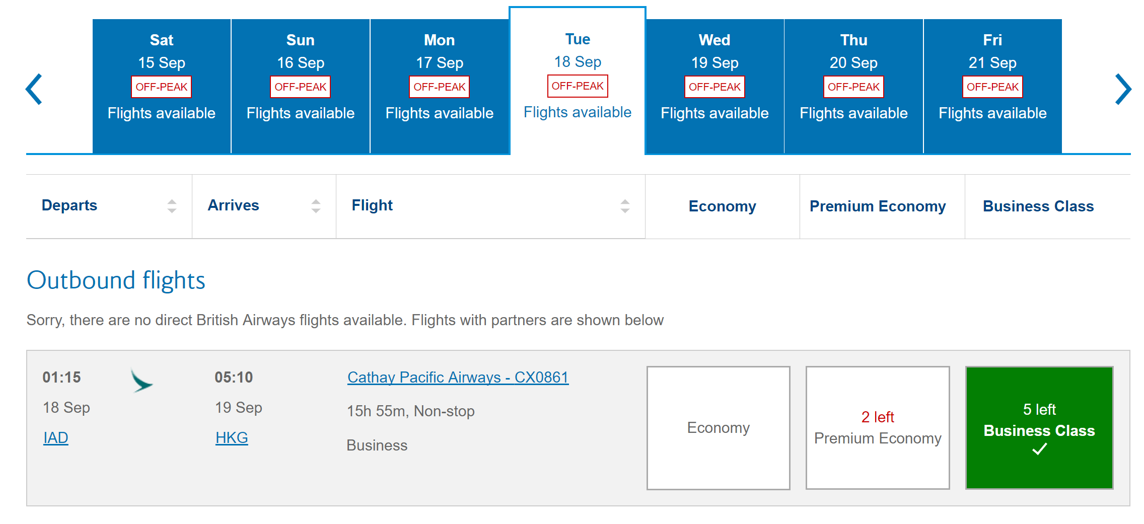Unfortunately, you're not going to find this award space easily. While American Airlines is a partner of Cathay Pacific, CX awards don't show up on aa.com. Same for Alaska's Mileage Plan website. Even our favorite award search service ExpertFlyer doesn't show Cathay Pacific award availability.