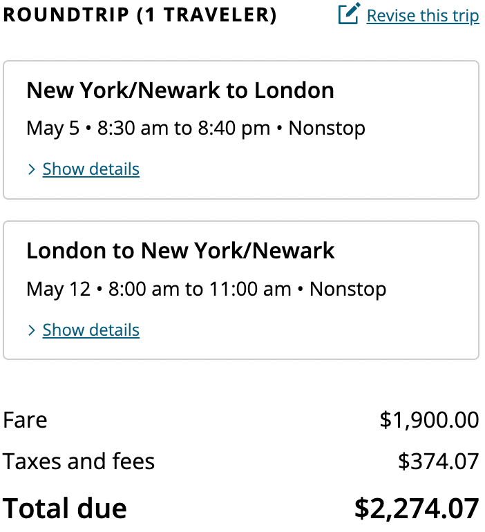 Flights from Newark Liberty International Airport (EWR) and Boston Logan International Airport (BOS) have the lowest fares of all United's flights to London, starting at $2,074.07 for a round-trip flight.