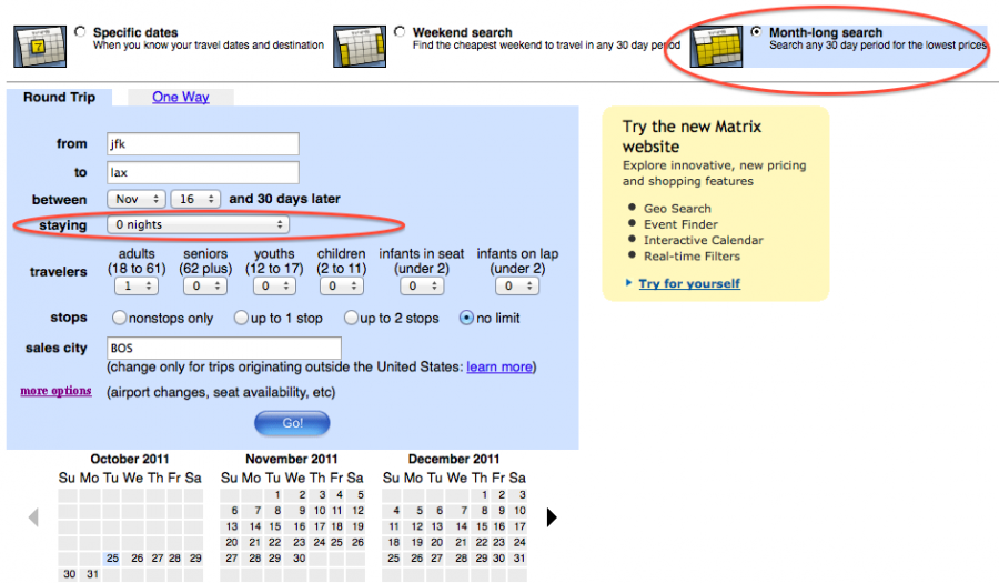 While this tool isn't perfect for simply finding the absolute cheapest flight from your home airport, it can help you plan your travel around dates that have the cheapest fares. Though most online booking agencies claim to do the same, in my opinion, ITA is the purest and quickest way to scan fares for good deals. ITA also helps when you hear about a mileage run, but can't seem to find any dates where the fare is bookable. Your best bet is to use ITA to scan for the low fare and price it, which will then allow you to go to your booking site and enter exactly what ITA found.