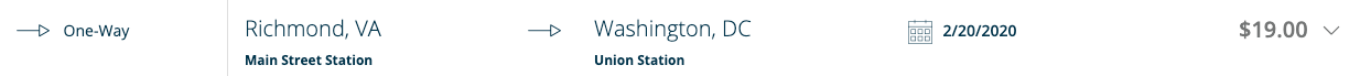 Richmond, Virginia, to Washington, D.C., for $19 one-way: