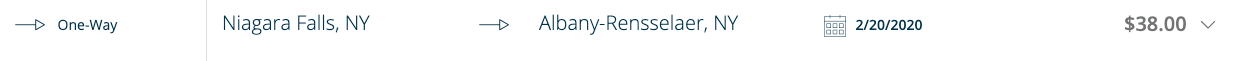 Niagara Falls, New York, to Albany, New York, for $38 one-way: