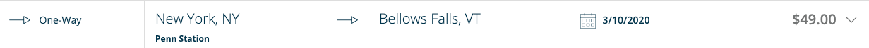 New York City to Bellows Falls, Vermont, for $49 one-way: