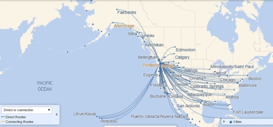 Alaska's route map is pretty big, but gets a lot bigger once you add in partner options!