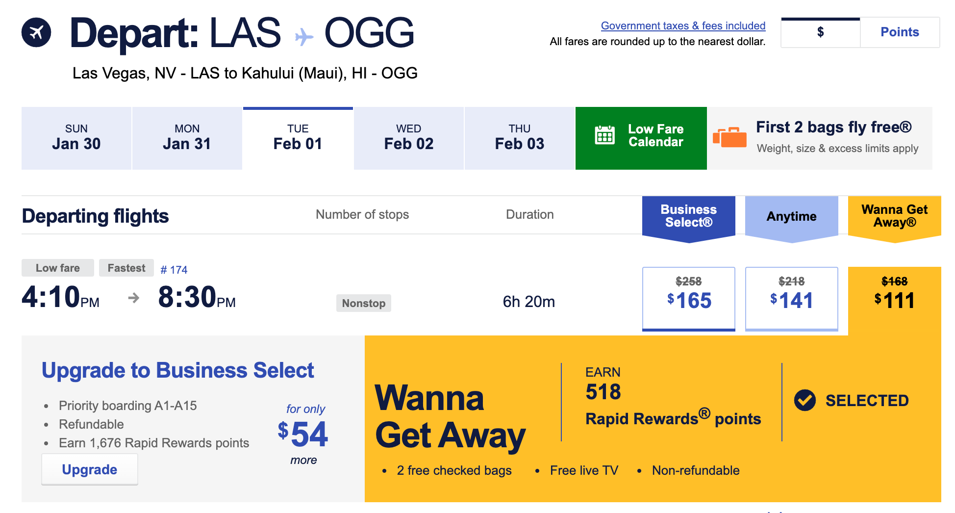 Las Vegas (LAS) to Maui (OGG) for $111 one-way