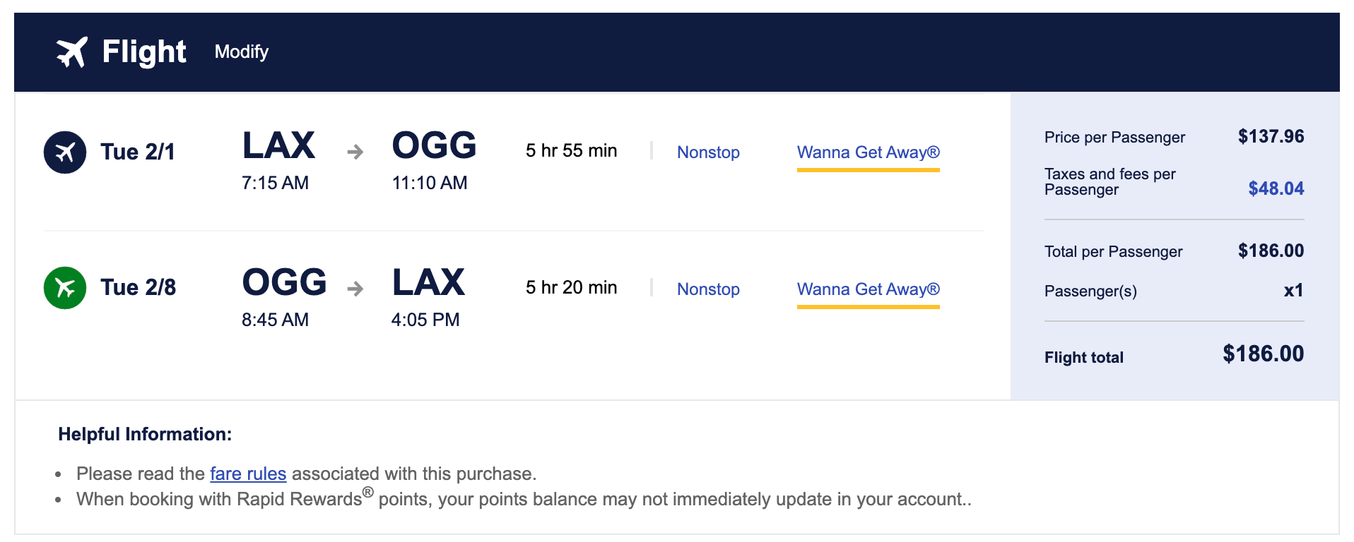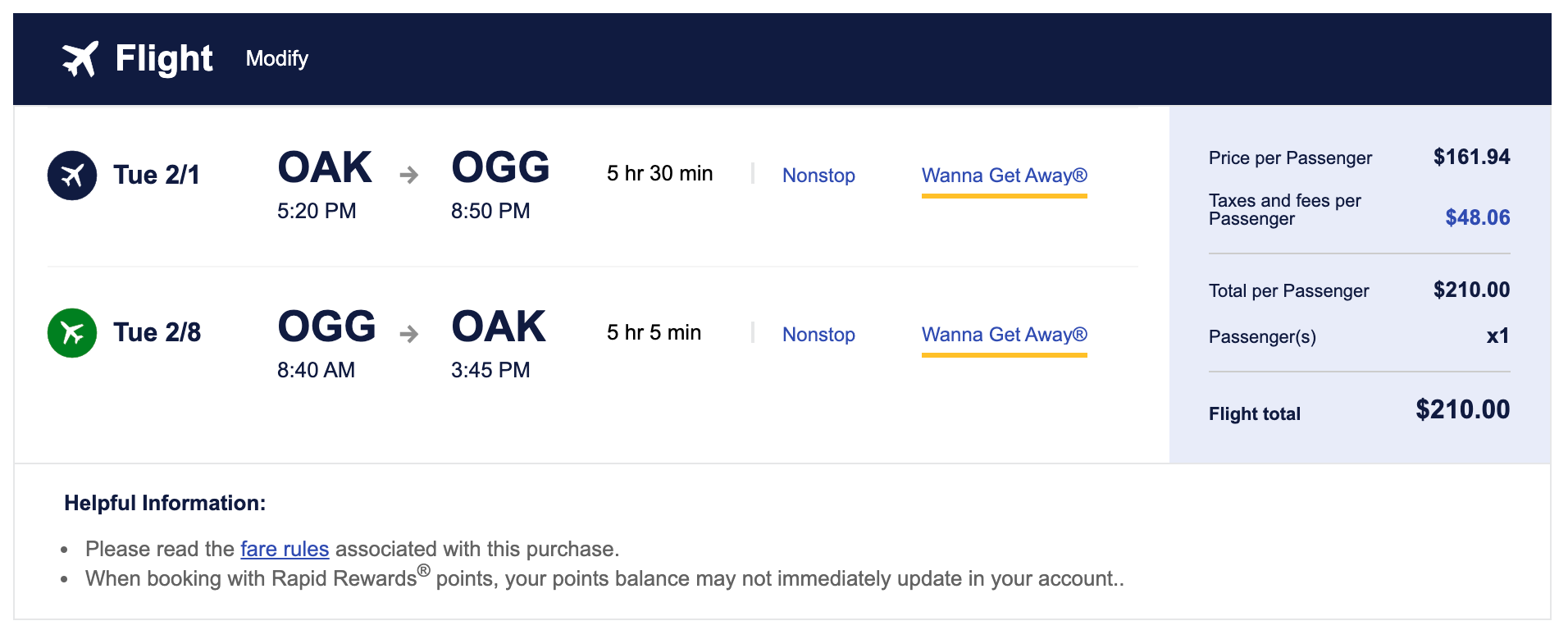 To book any of these deals, simply head to Southwest Airlines and plug in your desired departure and destination cities, with promo code "Hawaii2022." Use the calendar function to find dates and prices that work for you. Then click through to book.