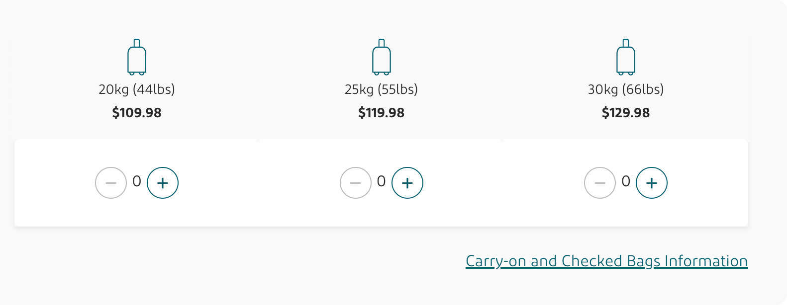 Aer Lingus also has a range of prices for checked baggage. For example, the lightest possible checked baggage — which would weigh 44 pounds maximum — would cost $109.98 round trip.