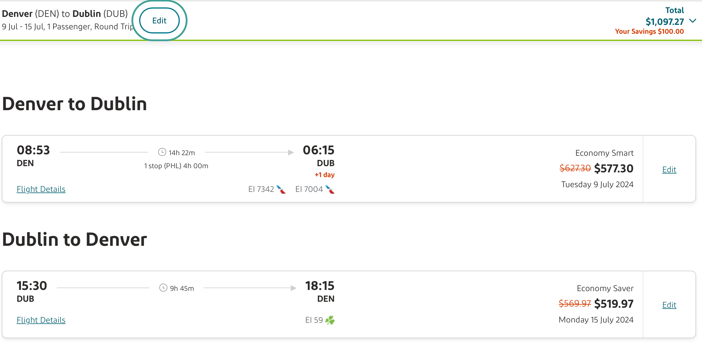 Here are a couple of summer itineraries to Dublin we found out of Denver International Airport (DEN) in the summer, with nonstop return flights. According to Google Flights, these prices are almost $400 less than normal.