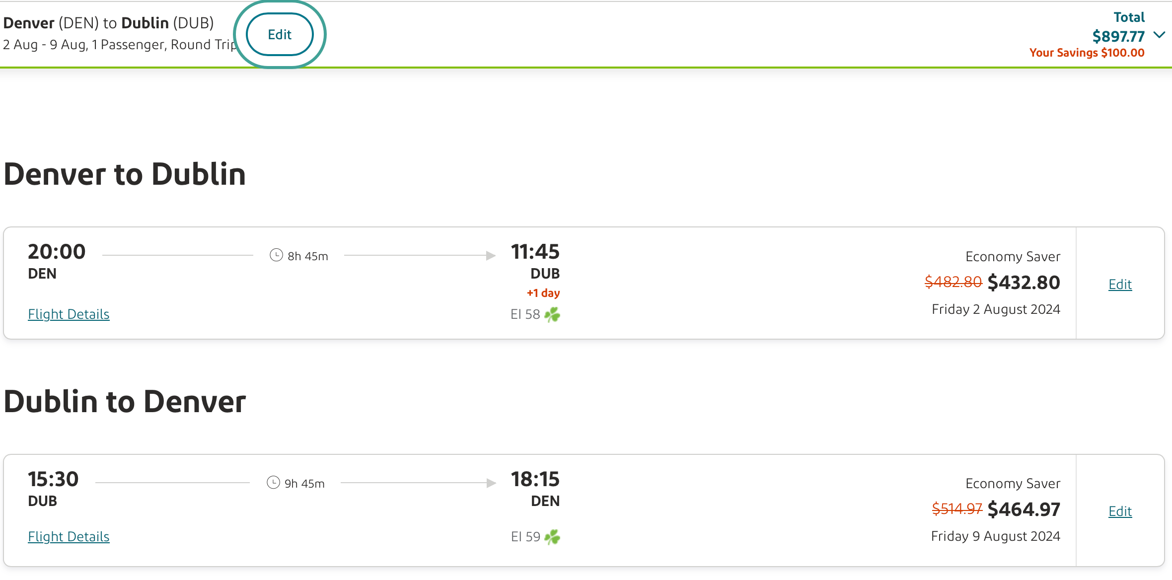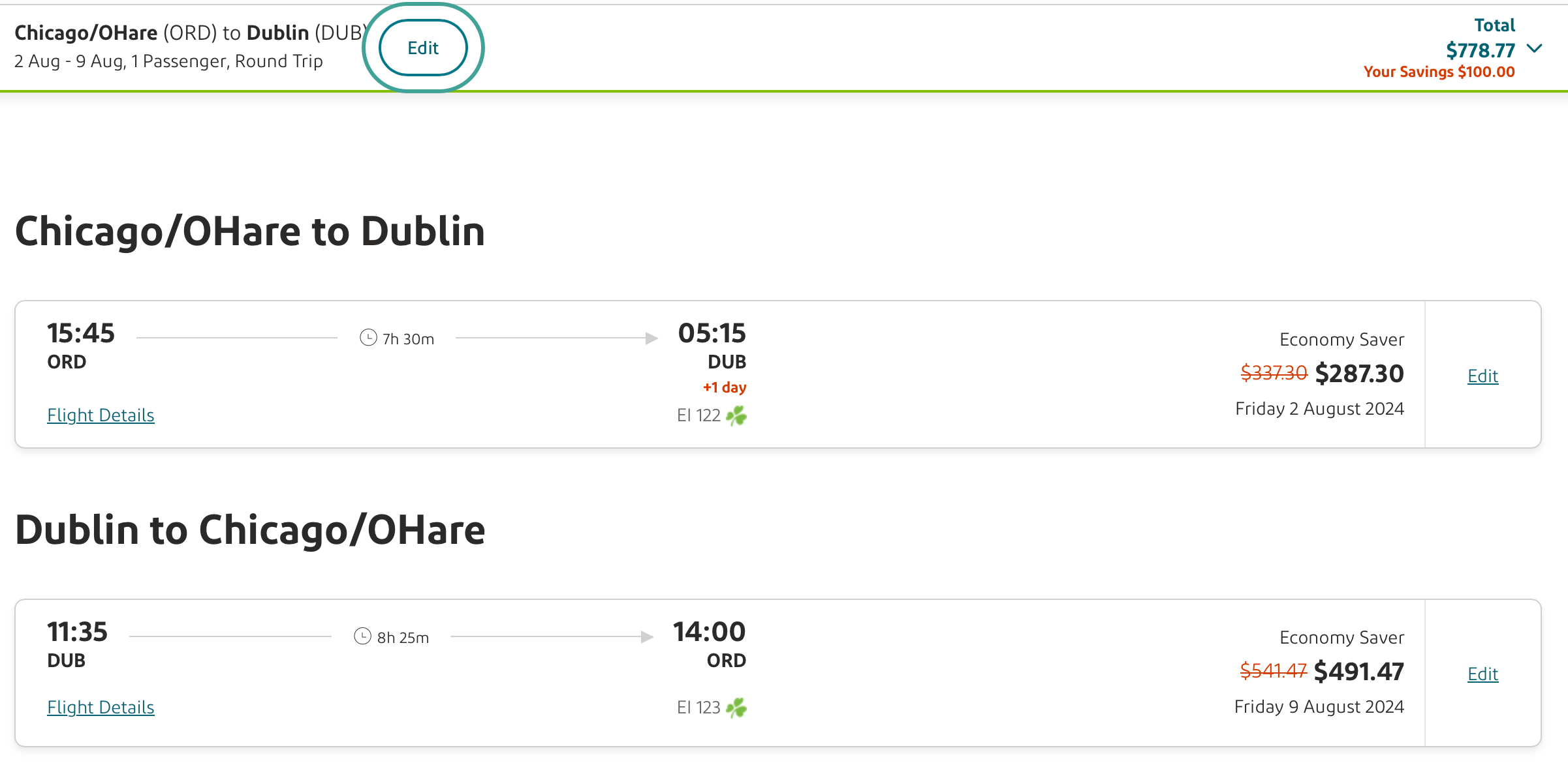 August was wide-open, with many round-trip fares to Ireland for less than $800. Here's one nonstop itinerary in early August from O'Hare International Airport (ORD) to Dublin for just $779 with the discount. This flight usually costs more than $1,000, so you're saving a large amount.