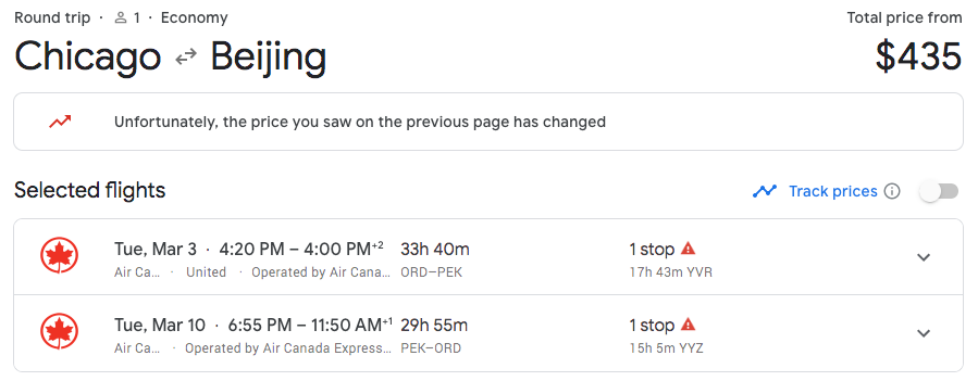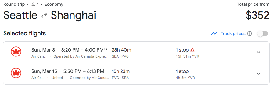 Now is the time to lock in on some inexpensive flights to Shanghai or Beijing via Air Canada. While availability is limited to certain dates in February and March 2020, the fares — ranging from $350-ish to $550-ish round-trip in economy — are worth booking.
