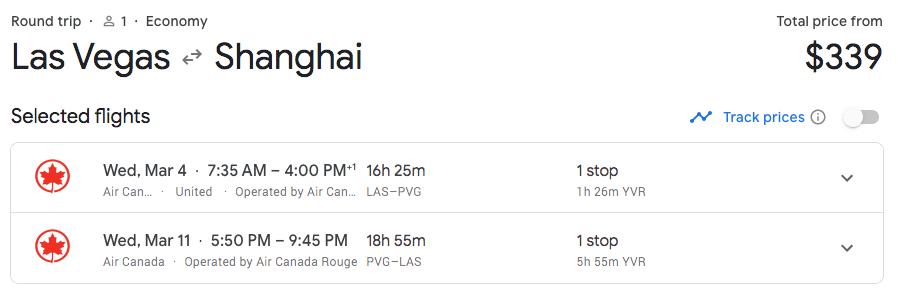 Las Vegas-LAS to Shanghai-PVG for $339 per person, round-trip in economy
