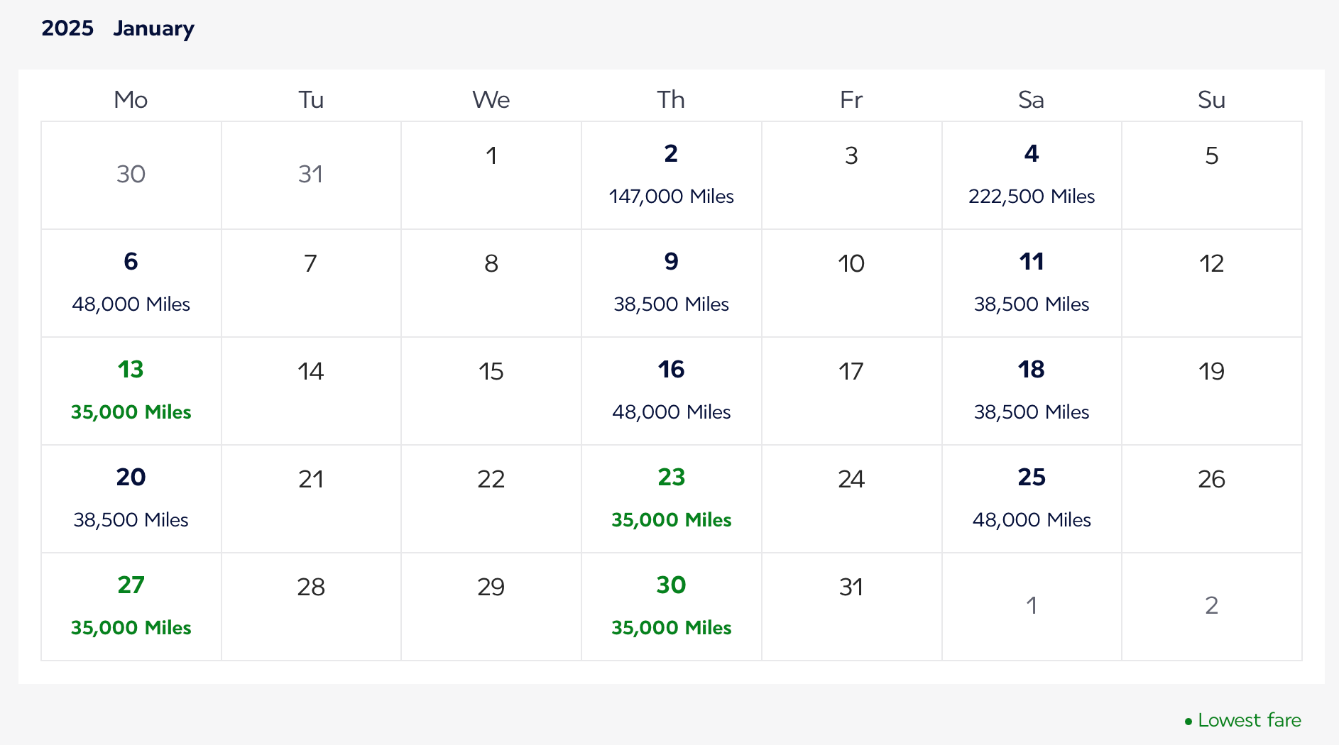 Travel dates: Now through June 2025; availability varies based on the route, but January and February have the most options