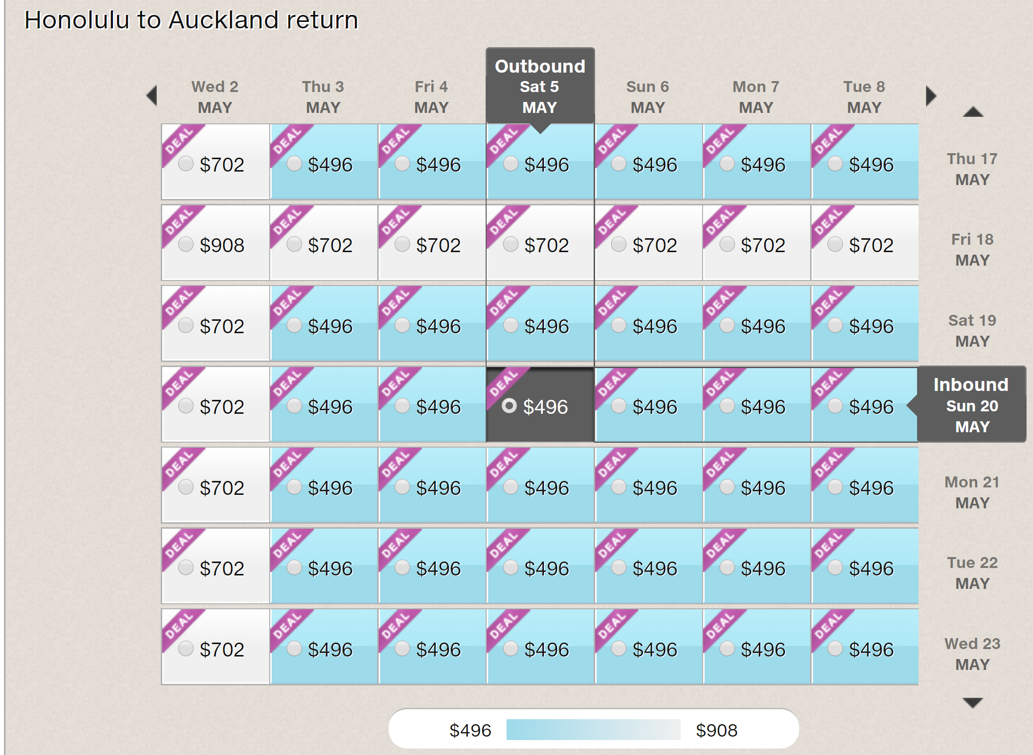 Honolulu (HNL) to Auckland (AKL) for $496 round-trip nonstop: